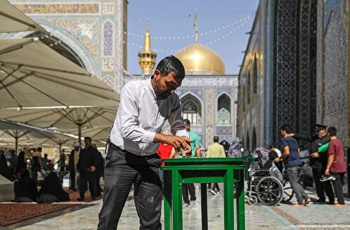 إزالة الغبار عن مرقد الامام علي بن موسى الرضا (ع) بحضور عوائل شهداء حرب الاثني عشر يوما