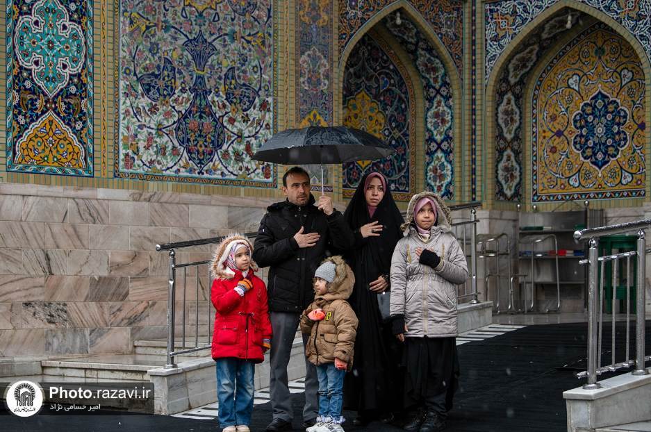 مع دخولِ كتلةٍ هوائيةٍ باردة إلى شمالِ شرقِ البلاد يومَ الجمعة 19 کانون الأول 2025 واستمرارِها حتى فجرِ يومِ السبت، شهدت صحون الحرمِ الرضوي الشریف تساقطَ الثلوجِ الخريفية، حيث أضفت هذه الأجواءُ المناخية مشهدًا روحانيًا وجماليًا على أرجاءِ الحرم الطاهر، كما قام خُدّام العتبة الرضویة المقدسة بفرشِ الأرضيات وجمع الثلوج من الصحون، لضمان سلامة الزائرين وتسهیل عبورهم.