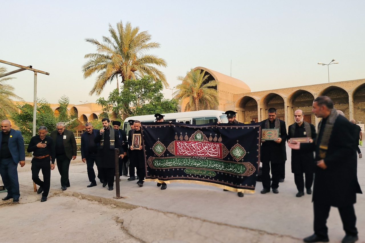 Servants of Imam Reza Shrine participated in Arbaeen pilgrimage and honored service camps along the route by presenting blessed gifts.
