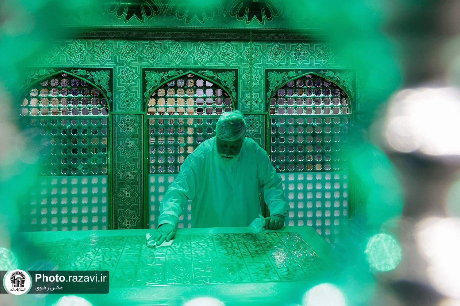 On the eve of the birth anniversary of Hazrat Fatima, Prophet Muhammad’s daughter, the spiritual ceremony of dust cleaning the illuminated chamber of Imam Reza Shrine was held for the first time with the exclusive presence of women.