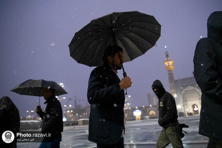 With the arrival of a cold air mass in northeastern Iran on Friday, the courtyards of Imam Reza shrine witnessed autumn snowfall that continued into early Saturday. The weather conditions created a striking and spiritual scene across the sacred complex, adding a sense of tranquility for pilgrims and visitors. Servants of the shrine ensured safety and comfort by laying protective floor coverings and clearing snow from the courtyards, allowing pilgrims to move peacefully during the snowfall.
