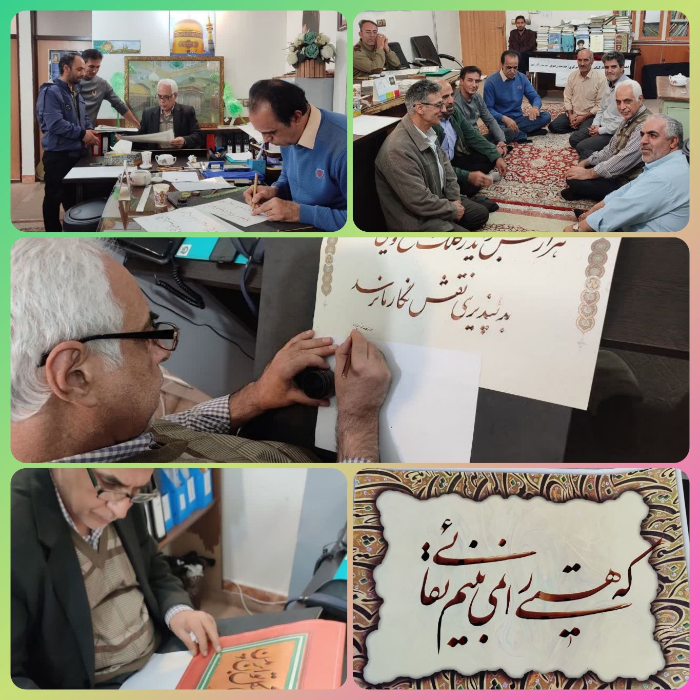 وی اضافه کرد: در این گردهمایی خوشنویسی که با حضور استاد خطاطی علی احمدزاده در جمع خوشنویسان خادمیار آذرشهری برگزار شد، خوشنویسان با الهام گرفتن از آموزه های اسلامی ایرانی به آفرینش آثار هنری خطاطی پرداختند.
