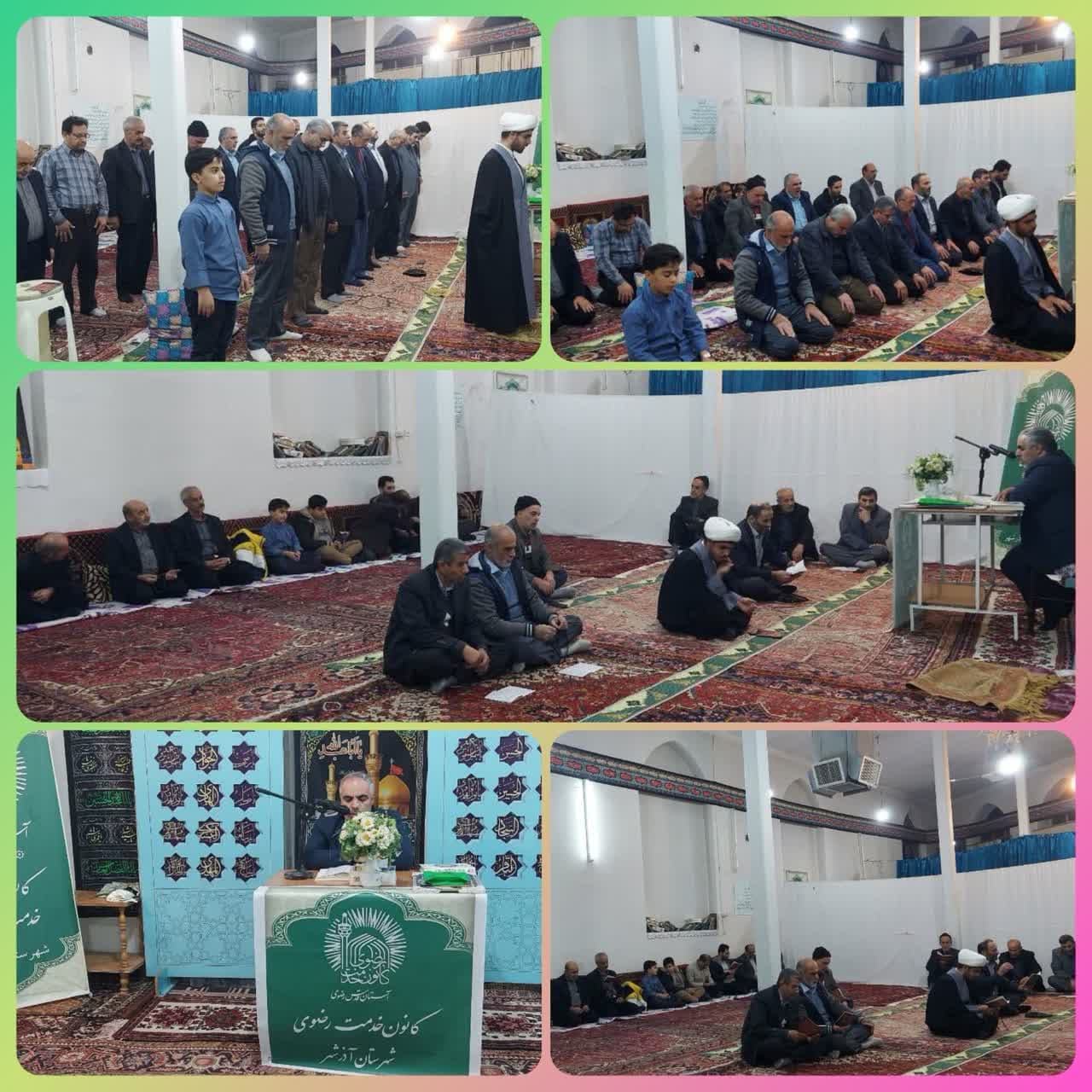 برای نمایش آرشیو پخش زنده کلیک کنیدبه گزارش آستان نیوز از آذربایجان شرقی، هادی غفاری مسئول روابط عمومی کانون مرکزی خدمت رضوی شهرستان آذرشهر گفت: مراسم معنوی چهارشنبه های امام رضایی بعد از اقامه نماز جماعت مغرب و عشا با تلاوت آیاتی چند از کلام الله مجید توسط خادمیار رسول حاج بابایی شروع شد و در ادامه مراسم حجت الاسلام مهدی اصلانی در مورد تربیت امام رضایی مطالبی را ارائه نمود.