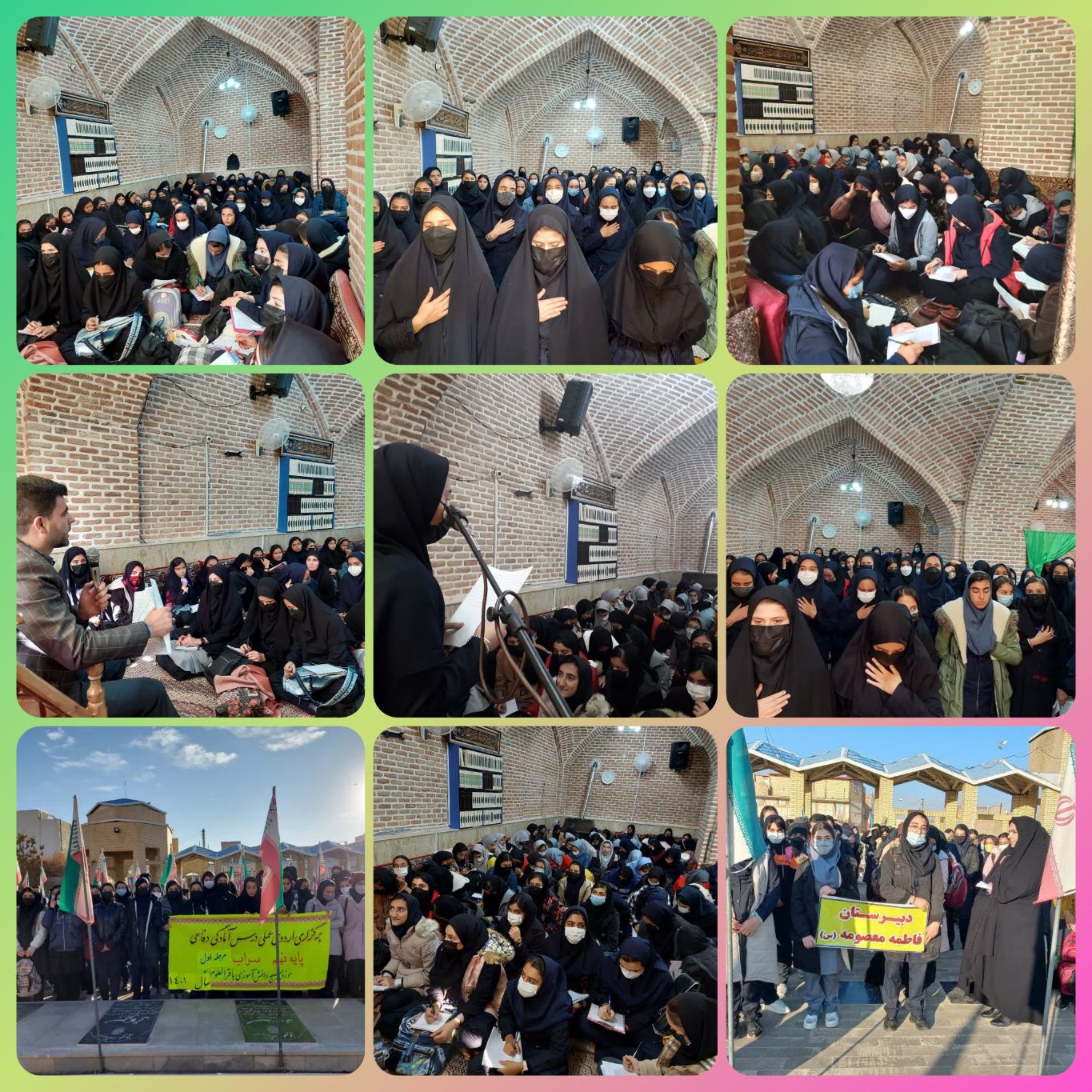 وی اضافه کرد: در ادامه این مراسم  زیارت عاشورا توسط یکی از خادمیاران قرائت شد و با زمزمه و هم خوانی دانش آموزان مراسم حالت معنوی و کربلایی بخود گرفت و بعد مربی آموزشی، محامدی مطالب کتاب درسی آمادگی دفاعی را به دانش آموزان ارائه کرده و آنها را نسبت به مسائل روز آگاهی دادند، سپس دانش آموزان سرود آمده ام ای شاه پناهم بده و صلوات خاصه امام رضا(ع) را همخوانی کردند و بعد از آن توسط مربی نیکنام، در مورد جبهه مقاومت و نقش آن در تحولات خاورمیانه مطالبی ارائه شد.