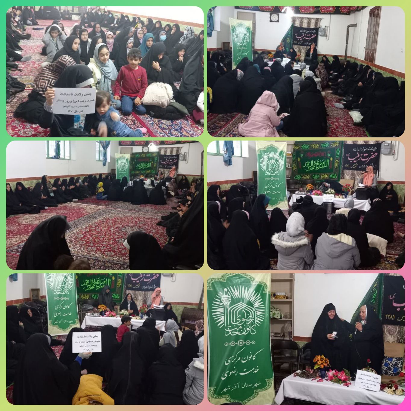 در ادامه این مراسم معنوی، بانو عبداللهی مداح و ذاکر اهل بیت در شان و منزلت حضرت زینب(س) به قرائت اشعار و مولودی خوانی پرداخت برنامه خود را با دعت برای سلامتی آقا امام زمان(عج) پایان برد و در آخر مراسم قبل از پذیرایی به حاضرین در مراسم که نامشان مزین به نام زینب بود از طرف کانون محله ای کوی کردان آذرشهر جوایز و تبرکات رضوی اهدا شد.