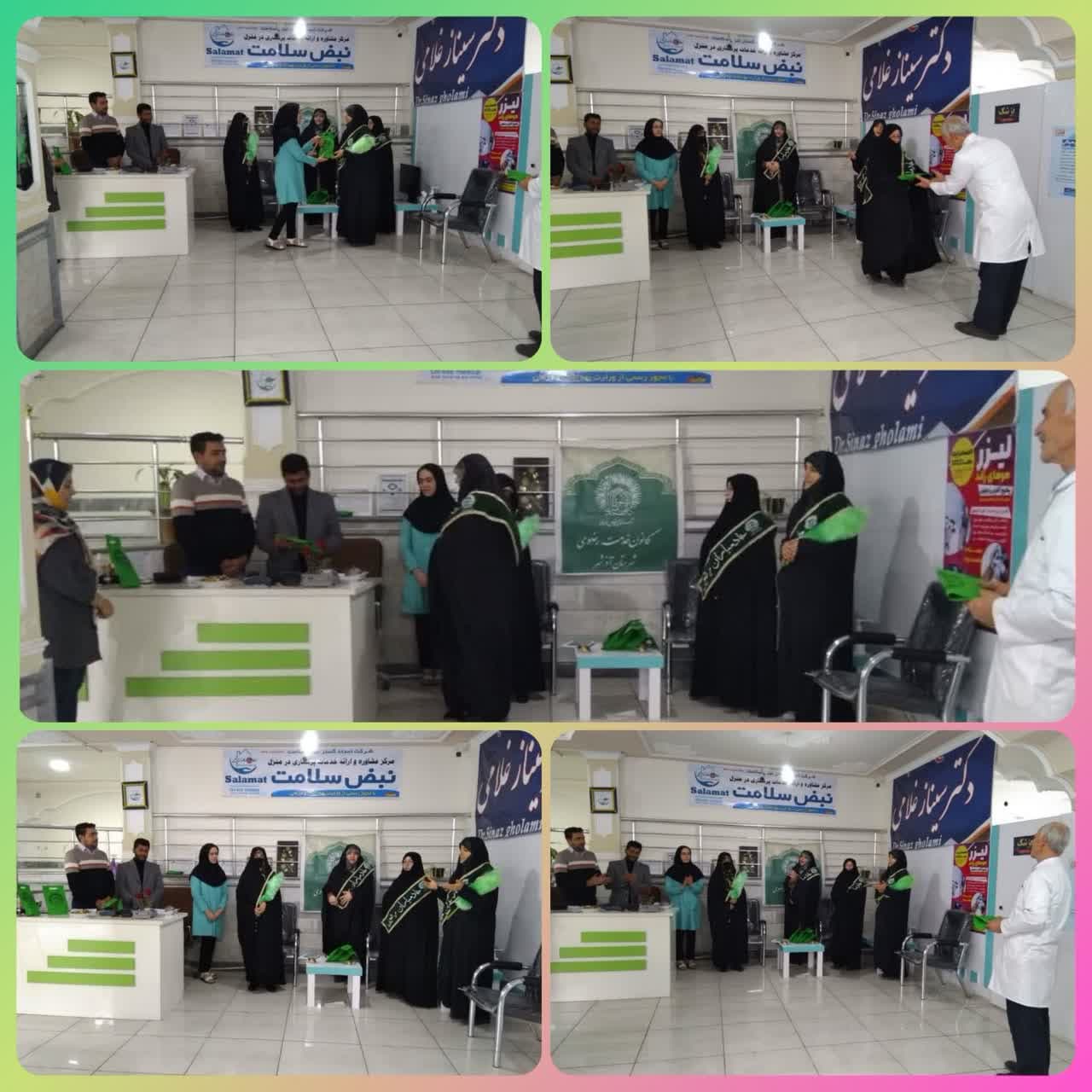 در پایان برنامه بانو سیناز غلامی پزشک و مسئول مرکز از حرکت بسیار پسندیده و غافل کننده خادمیاران تشکر و قدردانی کرد و خادمیاران با تبرکات حرم آقا علی بن موسی الرضا(ع)، شیرینی و گل از پزشک مرکز و کادر سلامت آن تجلیل به عمل آوردند.