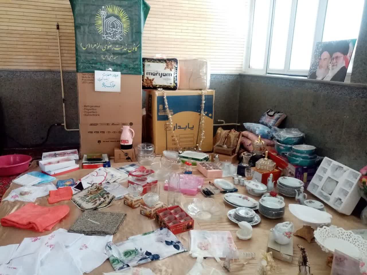 وی با بیان اینکه اقلام تهیه شده بعد از بسته بندی تحویل خانواده نومزدوج داده شد اقلام جهیزیه را يخچال دو درب، اجاق گاز پنج شعله، يك دست رختخواب، پتو دو عدد، سماور روگازى، سرويس ٨ پارچه تفلون، سرويس١٢ نفرى چينى، سرويس٢٣ پارچه، سرويس قاشق چنگال ٦ نفره، سرويس فنجان و نعلبكى و قندان، ميوه خورى و شيرينى خورى پايه دار چينى لوكس، سرويس بلور، سرويس كيك خورى، فلاسک چاى، شكلات خورى، ترى چاى و فنجان، حوله حمام و دستى، سرويس تترون، چادر و روسرى عروسى، سرويس عقد، سجاده و جانماز اعلام کرد.