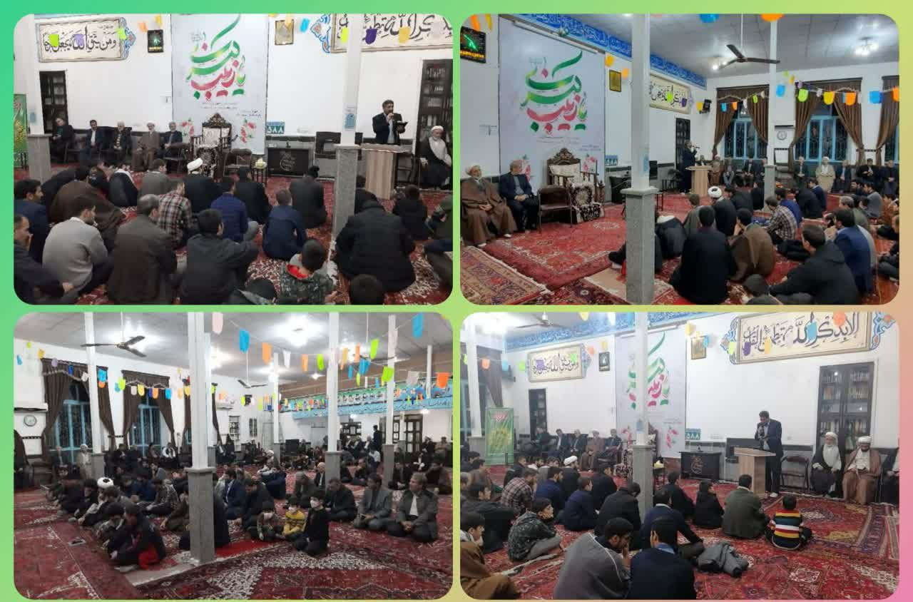 مراسم بعد از اقامه نماز مغرب و عشا با تلاوت آیاتی از قرآن مجید و پخش صلوات خاصه حضرت امام رضا علیه السلام آغاز شد و در ادامه ایوب باغی مداح و ذاکر اهل بیت به قرائت اشعار و مدیحه سرایی در منقبت دختر گرامی امیرالمومنین، حضرت زینب کبری سلام الله علیها پرداخت و با شادی و سرور حضار، مراسم شور و حال معنوی خاصی به خود گرفت.
