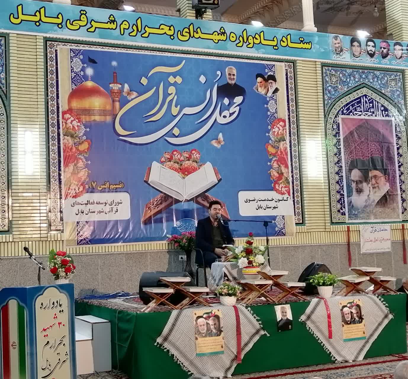 این مراسم معنوی با تلاوت زیبای قاری نوجوان محمد حسین عظیمی آعاز شد. دبیر کانون خدمت رضوی شهرستان بابل با خیرمقدم به شرکت کنندگان در مراسم وبه آیت اله لائینی نماینده ولی فقیه در استان، فرماندار بابل و معاونین خادمیاری استان، با اشاره به اینکه قرآن معجزه جاودان پیامبر عظیم الشان است از قرآن به عنوان بهترین کتاب هدایت بشر یاد کرد.