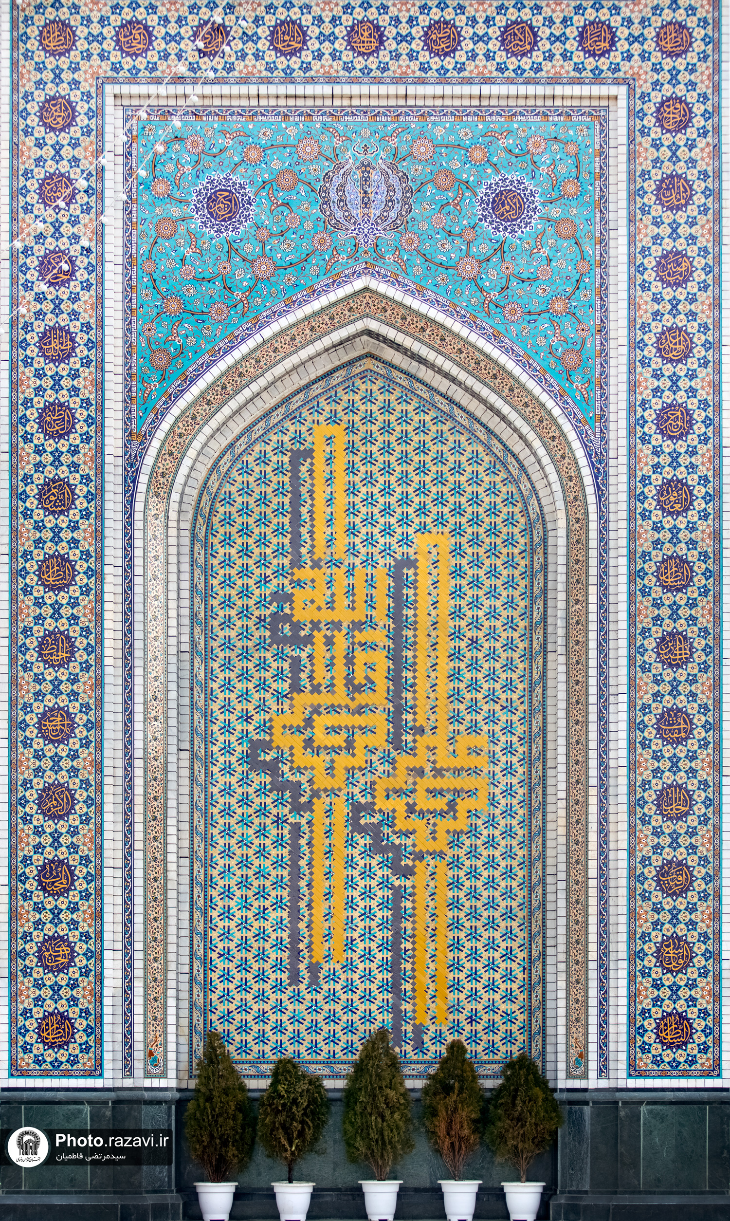 عکس با کیفیت : نقش علی ولی الله بر کاشی کاری های جنب ورودی باب الکاظم علیه السلام حرم مطهر رضوی