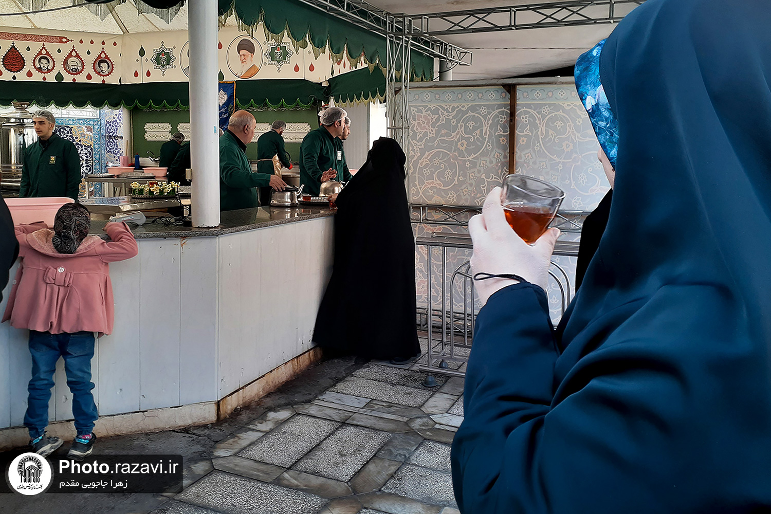 فقط زائر امام رضا(علیهالسلام) میفهمد چقدر نوشیدن یک چای در حرم آقا میچسبد. وقتی خسته از همه کارهای روزانهاش خود را به نماز و زیارتی در حرم رسانده است و دلش میکشد تا گلویی تازه کند. حتی آنها که نیت نوشیدن چای را هم ندارند، وقتی به چایخانه حضرت میرسند، دست دلشان میلرزد و پای عجلهشان سست میشود. انگار این چای بیارزد به همه معطلیهای دنیا! انگار تنها خواهش آن لحظهشان همین باشد که باید اجابت شود. کوچک و بزرگ، مرد و زن در میان مسیرهایی که برای نظمبخشیدن به توزیع چای تعبیه شده است، میایستند و برای نوشیدن یک لیوان چای کنار حضرت...