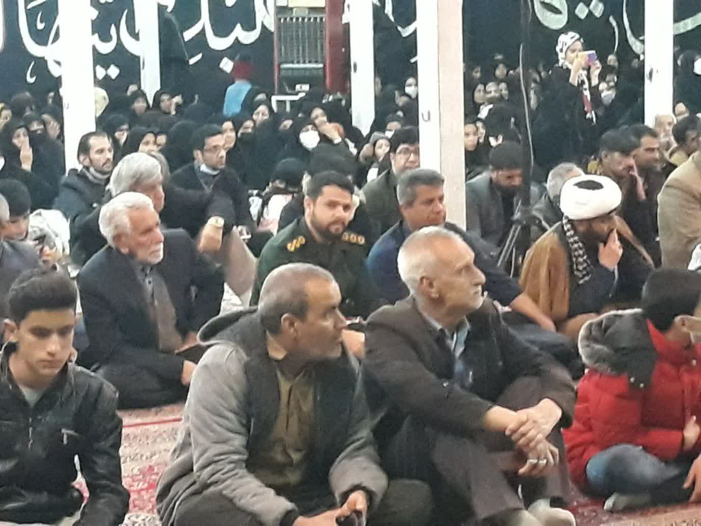 این مراسم در تکیه سیدالشهدا ریحان شهر با سخنرانی حجت الاسلام هاشم پور و قوام آبادی و مداحی جواد حسینخانی همراه بود و در پایان مراسم شرکت کنندگان و عزاداران مهمان سفره حضرت زینب سلام الله علیها شدند.
