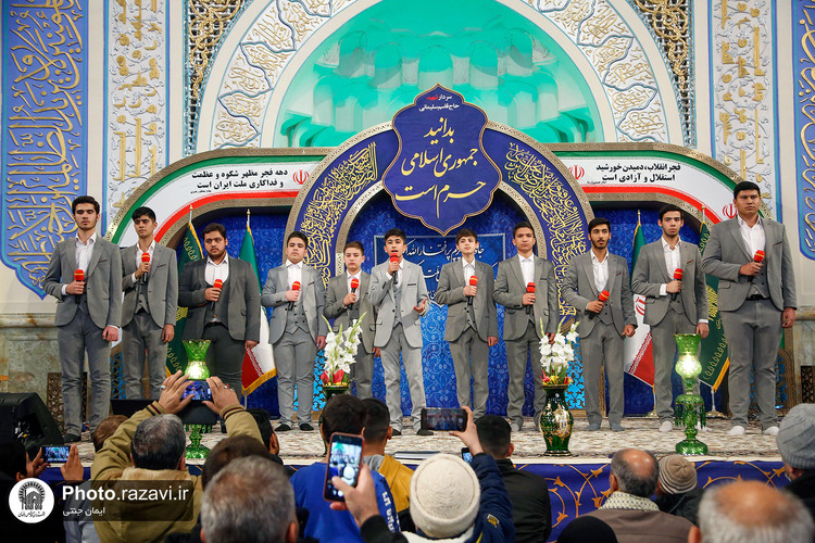 مراسم چهل و چهارمین سالگرد پیروزی انقلاب اسلامی شامگاه جمعه 21 بهمن 1401 با حضور پرشور مردم متدین و انقلابی در رواق امام خمینی حرم مطهر رضوی برگزار شد.