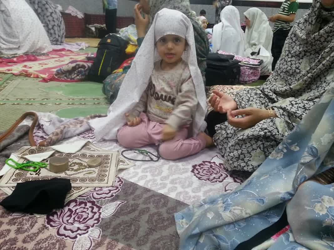 مادر 28 ساله که 3 فرزند دارد، می گوید: دو دختر 7 و یک سال و دو ماهه را با خود به مراسم آورده ام و امسال دومین تجربه شرکت در مراسم اعتکاف را دارم.