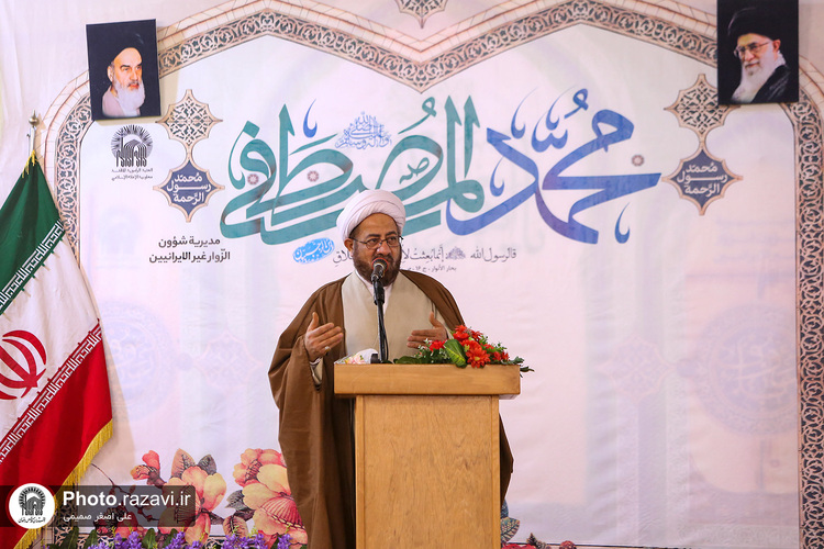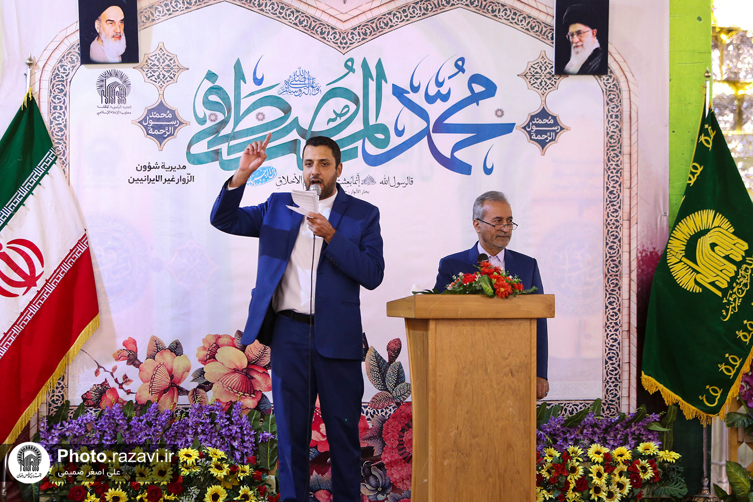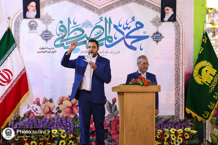 مراسم جشن مبعث پیامبر اکرم ویژه زائران عرب زبان، شامگاه جمعه 28 بهمن 1401 در رواق دارالمرحمه حرم مطهر رضوی برگزار شد.