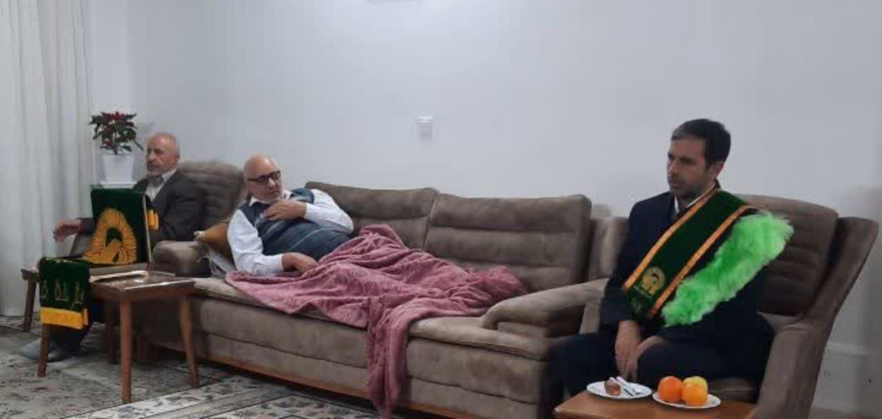 در پایان خادمیاران کانون خدمت رضوی امامزاده ابوالعباس محمد(ع) با اهدای تابلو فرش متبرک از خانواده جانباز قدردانی کردند و زحمات و مجاهدت های جانباز سرافراز را گرامی داشتند.