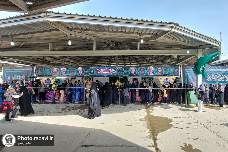 به مناسبت نیمه شعبان و ایام ولادت امام زمان عجل الله تعالی فرجه الشریف به همت بنیاد کرامت رضوی و کفشداران بارگاه منور رضوی از زائران عتبات عالیات عراق در مرز مهران با غذای گرم پذیرایی شد.
