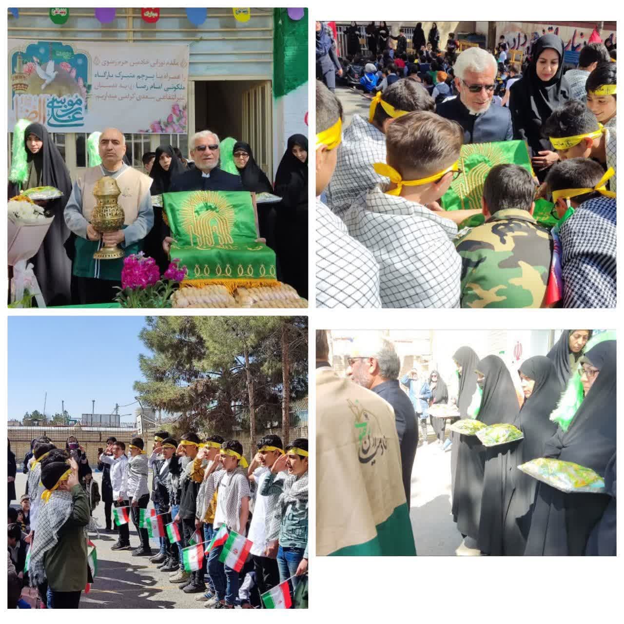 این برنامه در مدارس در ولایت و سعدی برگزار شد و خادمیاران رضوی خواهر و برادر حاملان پرچم متبرک حضرت علی ابن موسی الرضا علیه السلام در میان اشک و شوق دانش‌آموزان، اولیا و مسئولان مدرسه، با استقبال رسمی دانش‌آموزان در جایگاه حضور یافتند.