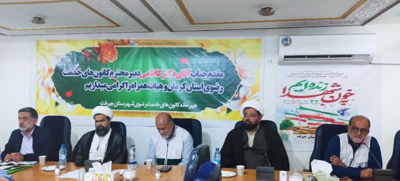 در ادامه این دیدار کرامت پیرنیا دبیر کانون های خدمت رضوی و مسئولان کانون های عمومی و تخصصی شهرستان جیرفت به ارائه گزارش عملکرد و پیشنهادات پرداختند.