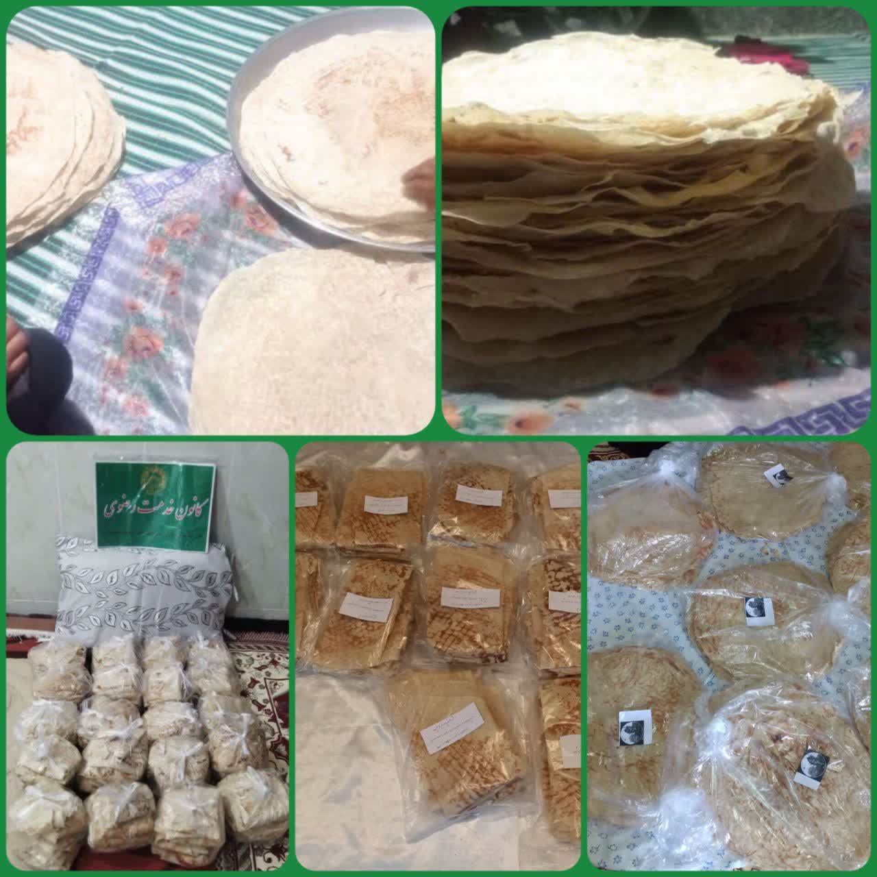 بر این اساس، تعداد ۳۰۰۰ قرص نان محلی توسط ۶ کانون خدمت رضوی در چهارشنبه های امام رضایی بین خانوارهای نیازمند توزیع شد.