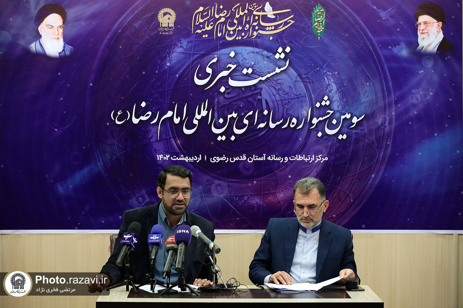 نشست خبری سومین جشنواره رسانهای امام رضا(علیهالسلام) با حضور دکتر اکبر نصراللهی، دبیر علمی جشنواره و محسن هوشمند، رئیس مرکز ارتباطات و رسانه آستان قدس رضوی در جمع خبرنگاران، روز پنجشنبه 7 اردیبهشت 1402 در تهران برگزار شد.
