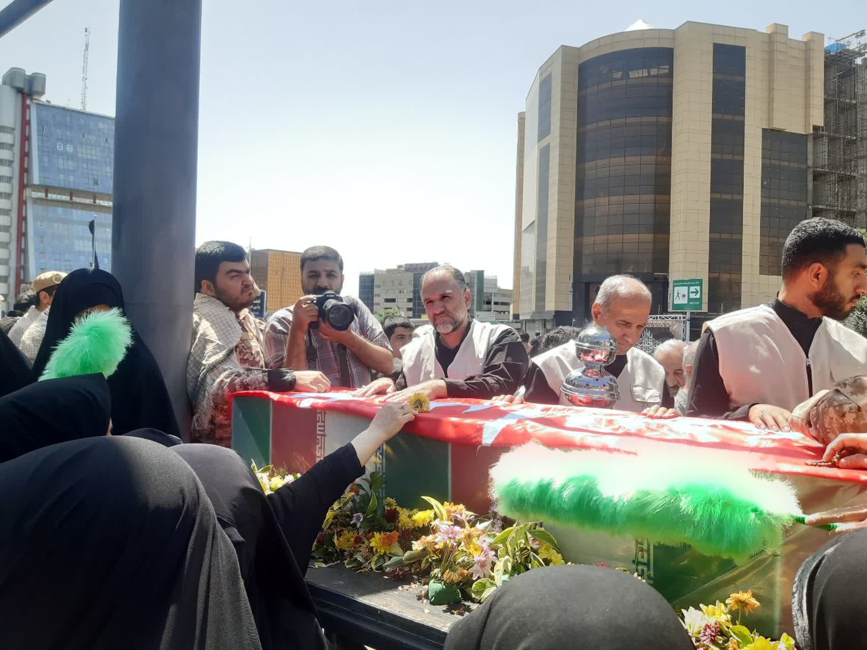 آیات روحبخش قرآن کریم به طور رسمی آغازگر مراسم بود و صدای رهبر معظم در حال سلام کردن به ائمه و چهارده معصوم به گوش رسید و با نام حضرت مهدی(عج) همه قیام کرده و در همان حالت ایستاده سرود جمهوری اسلامی ایران را با عشق به وطن زمزمه کردند و با رسیدن به عبارت: «شهیدان، پیچیده در گوش زمان فریادتان، پاینده مانی و جاودان جمهوری اسلامی ایران» با نگاه به پیکر شهید و یاد رشادت شهدا اشک ها سرازیر شد.