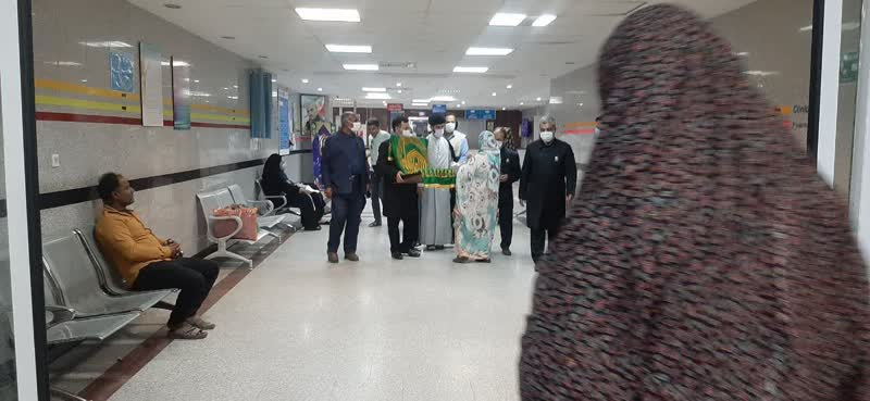 با ورود خدام حرم مطهر رضوی، فضای بیمارستان سراسر آکنده از شمیم معطر هشتمین اختر تابناک آسمان امامت و ولایت شد.