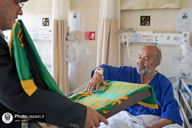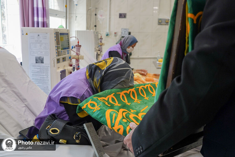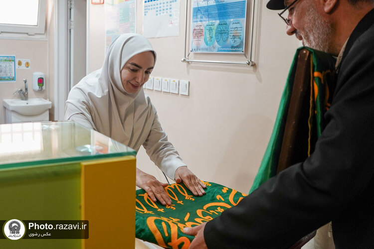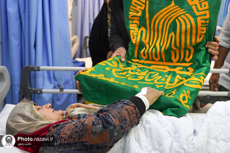 خادمان کاروان زیر سایه خورشید در سفر به استان قزوین با حضور در بیمارستان تامین اجتماعی امیرالمومنین(علیهالسلام) تاکستان با پرچم متبرک حضرت رضا(علیهالسلام) به عیادت بیماران این بیمارستان رفتند.