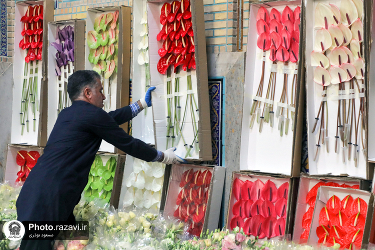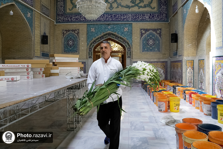 آماده سازی گلآرایی حرم مطهر رضوی در دهه کرامت
