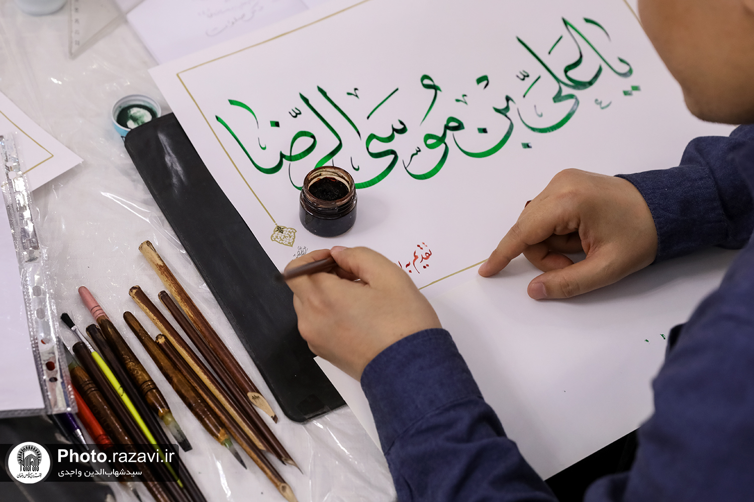 خوشنویسی احادیث رضوی در حرم امام رضا(علیه‌السلام)