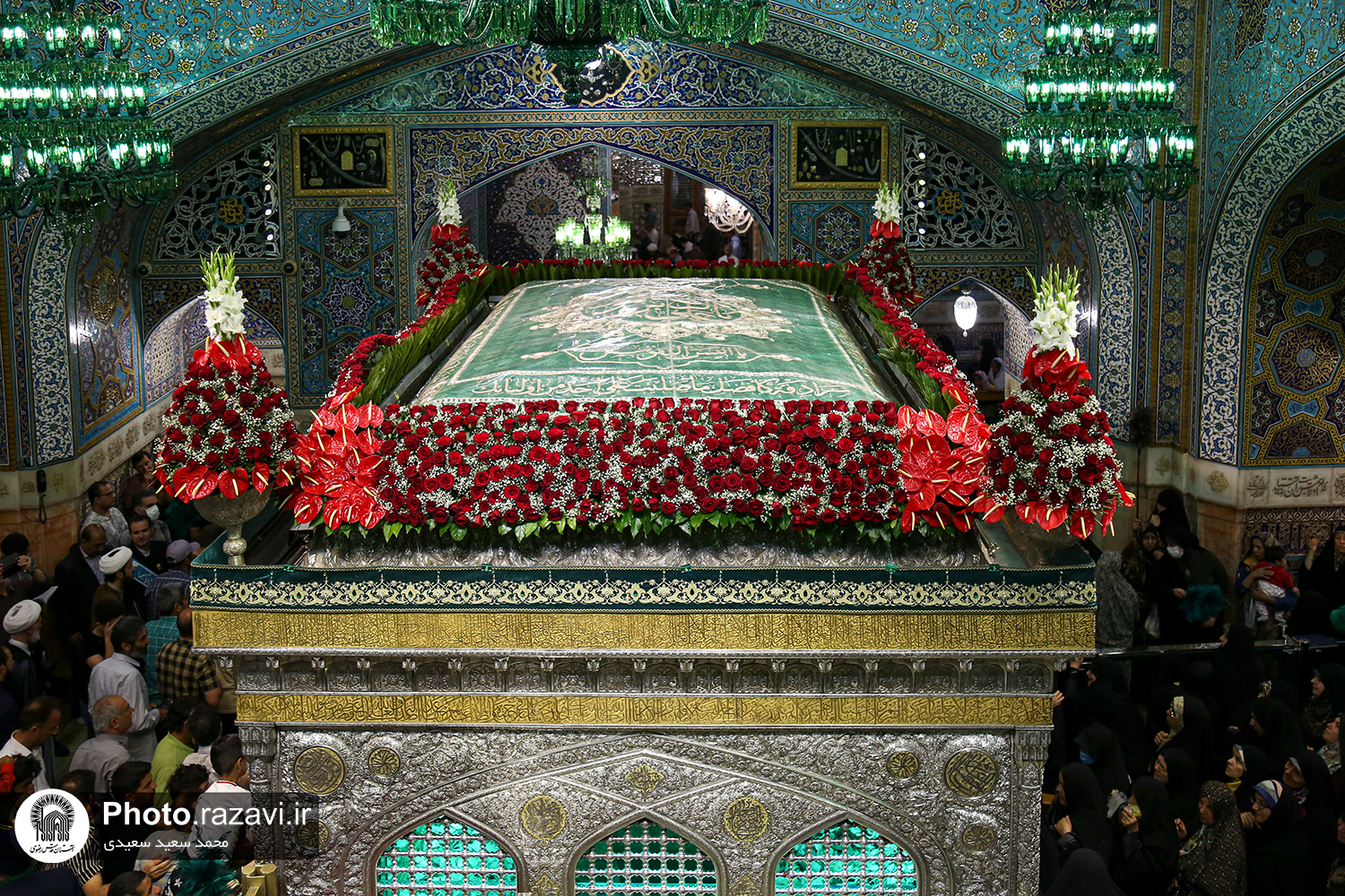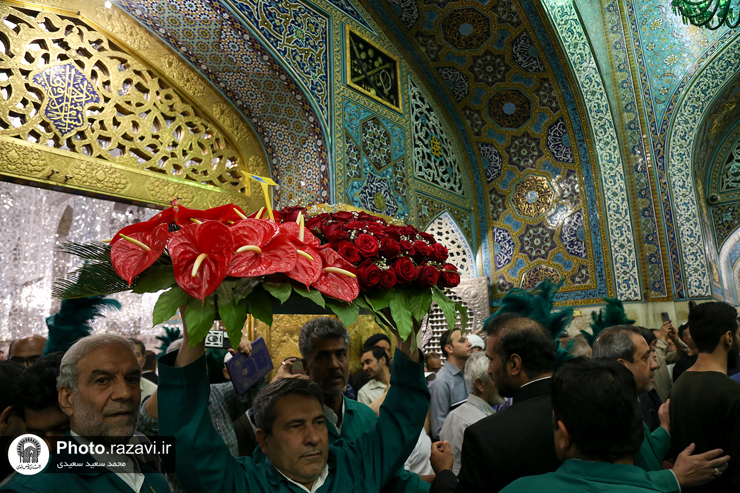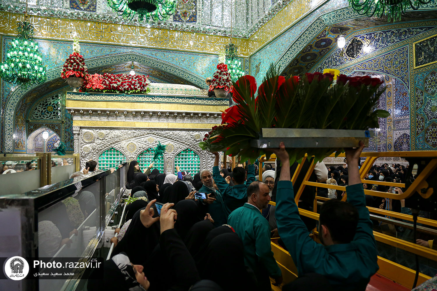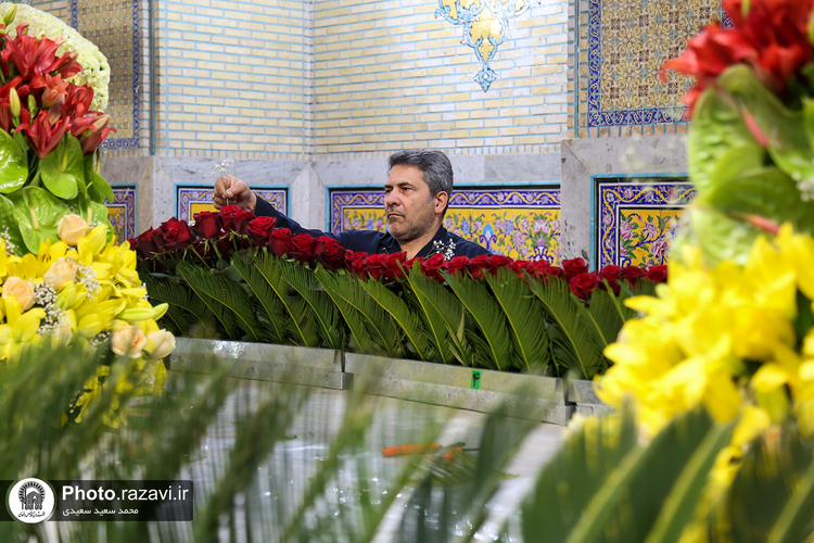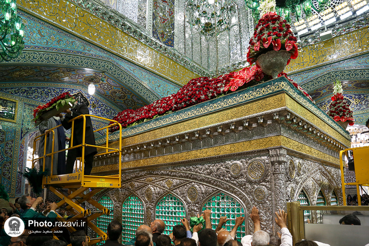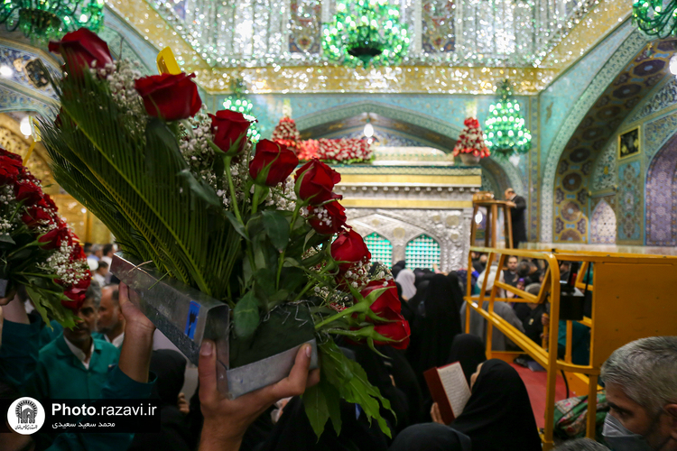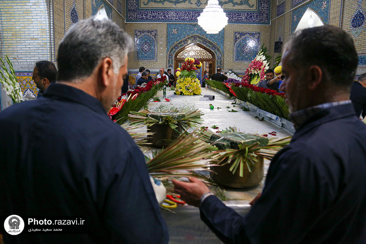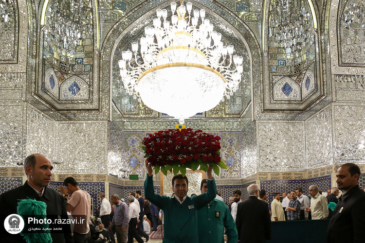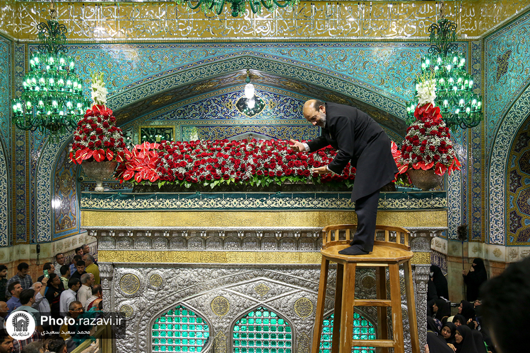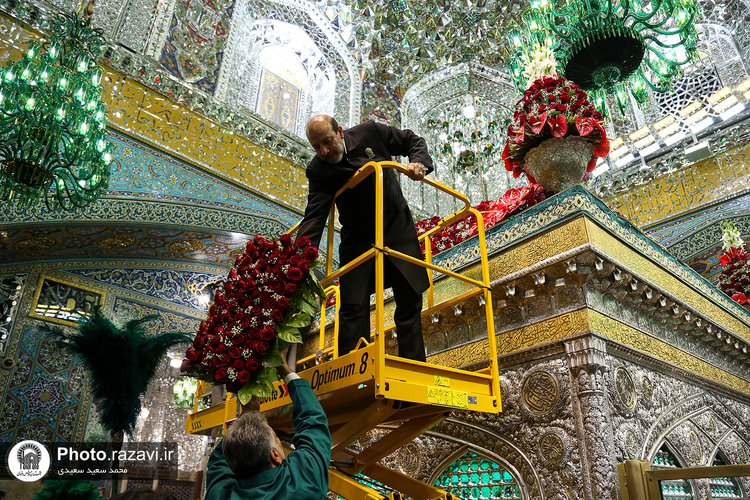 گلآرایی ضریح مطهر رضوی در آستانه ولادت امام رضا(علیهالسلام)