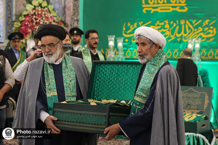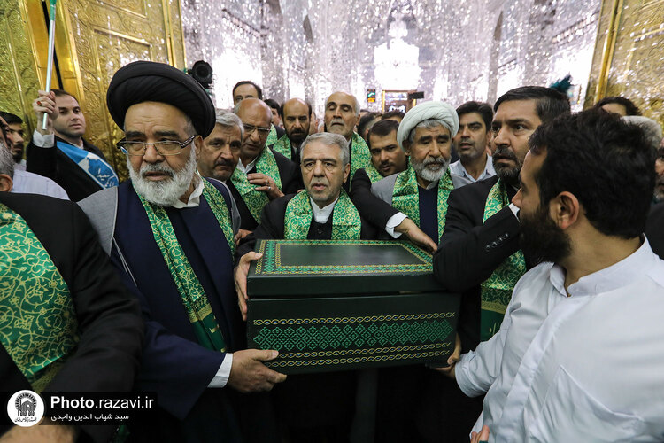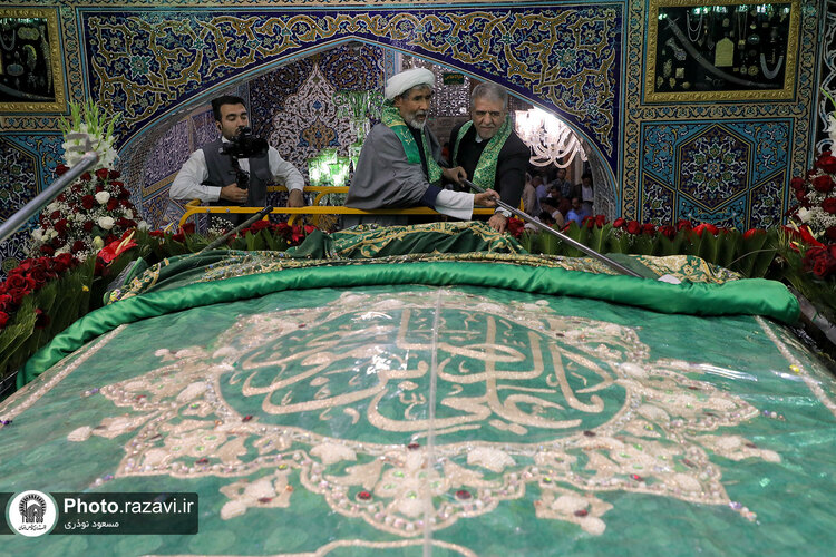 آیین تعویض پوش ضریح مطهر رضوی در روز میلاد امام رضا(علیهالسلام)