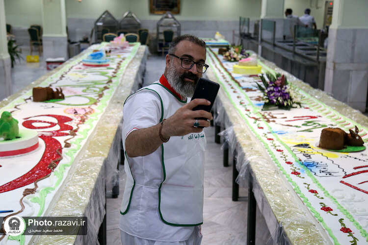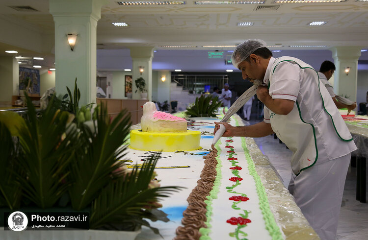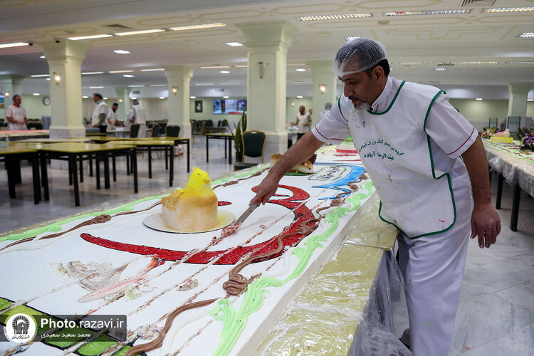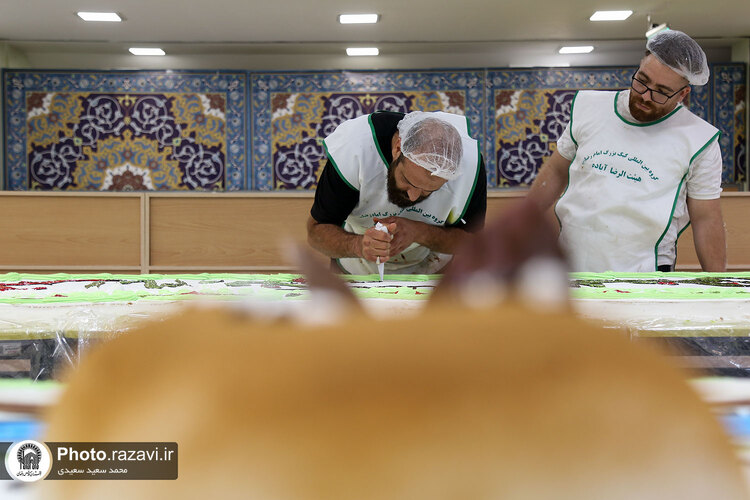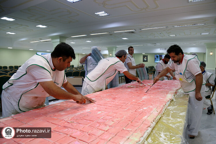 پخت و توزیع کیک ویژه ولادت امام رضا علیه السلام در حرم مطهر رضوی