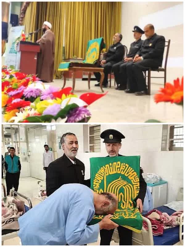 در این دیدار معنوی بخش های مختلف بیمارستان متبرک به صفای امام رضا(ع) شد و بیماران پرچم بارگاه ملکوتی امام رئوف را به نیت شفا طوطیای چشم خود قرار دادند.
