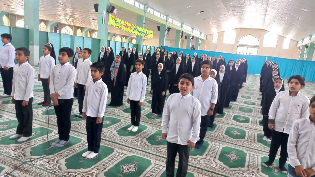 دانش‌آموزان عنبرآباد سرود با نام و یاد امام هشتم، حضرت علی ابن موسی الرضا(ع) در مصلی اجرا کردند.