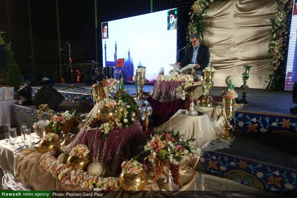 وی ادامه داد: از جذابترین بخشهای برنامه قرائت خطبه عقد تعدادی از زوجها بود. خطبه عقد توسط حجتالاسلام محمدی امام جمعه غرب اصفهان خوانده میشد که پس قرائت عقد، نقاره زنی خادمان و نورافشانی و پرچم گردانی انجام میگرفت.