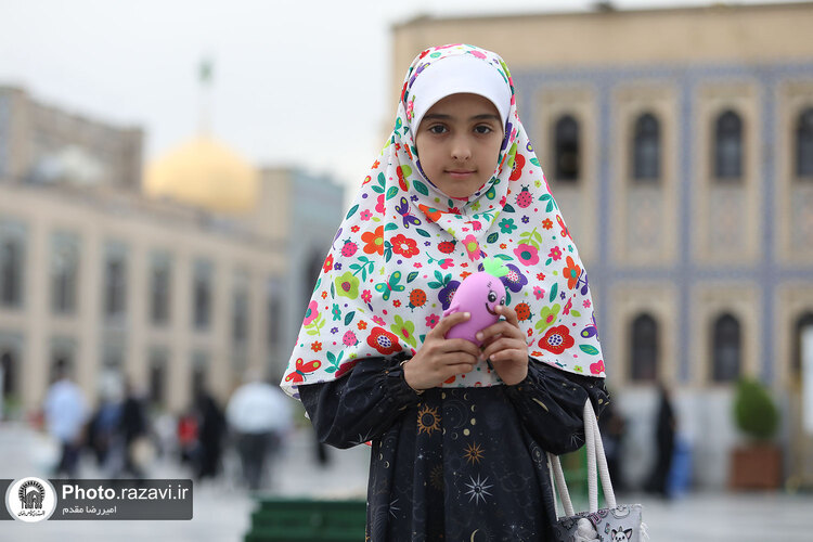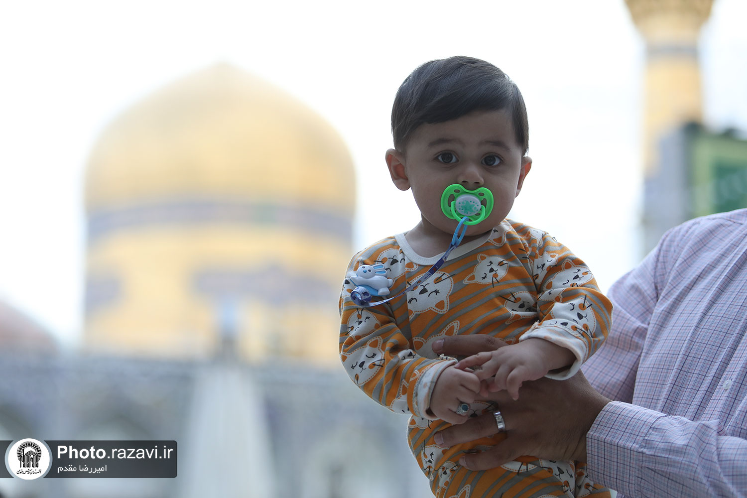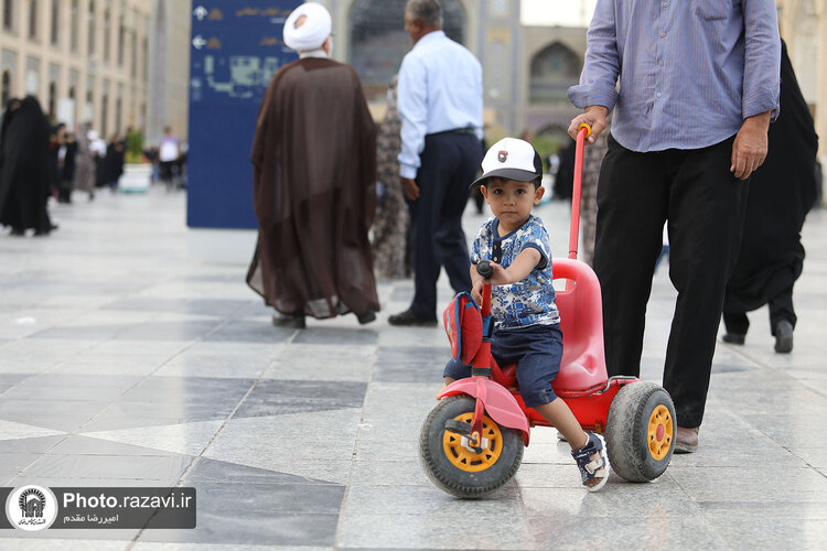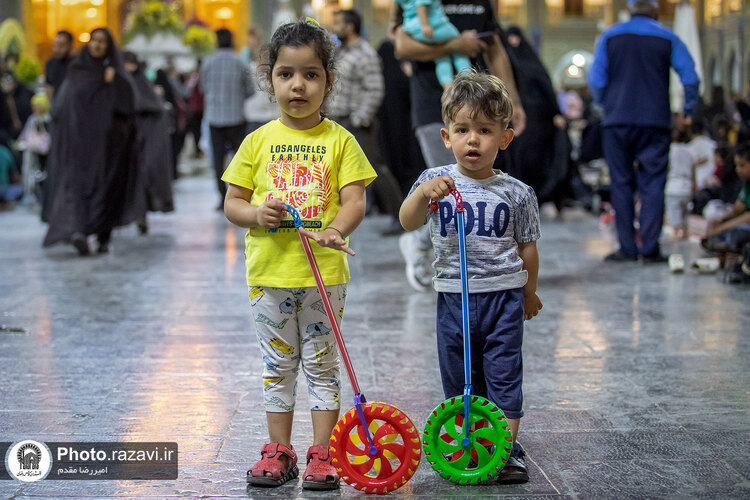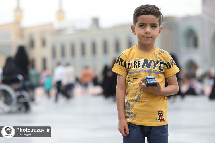 هر گوشه از صحن و سرای حرم را که میبینی، کودکی حضور دارد تا نقش و رنگی دلنشین ایجاد کند. از عروسکهای دختربچهها گرفته که برای زیارت با خود به حرم میآورند تا ماشینهای پسربچهها که حاشیهی فرشها را جاده میکنند و از نگاه کودکان تا گنبد طلا، همهاش رنگ است از دنیای کودکی که به این آستان میزنند.