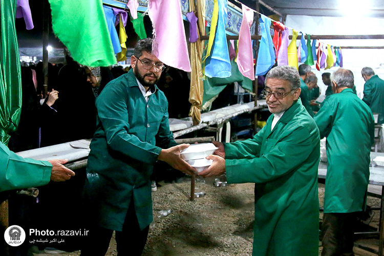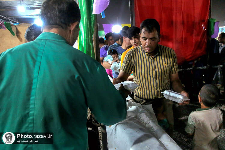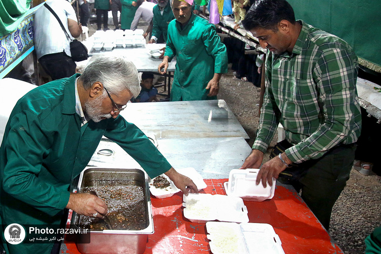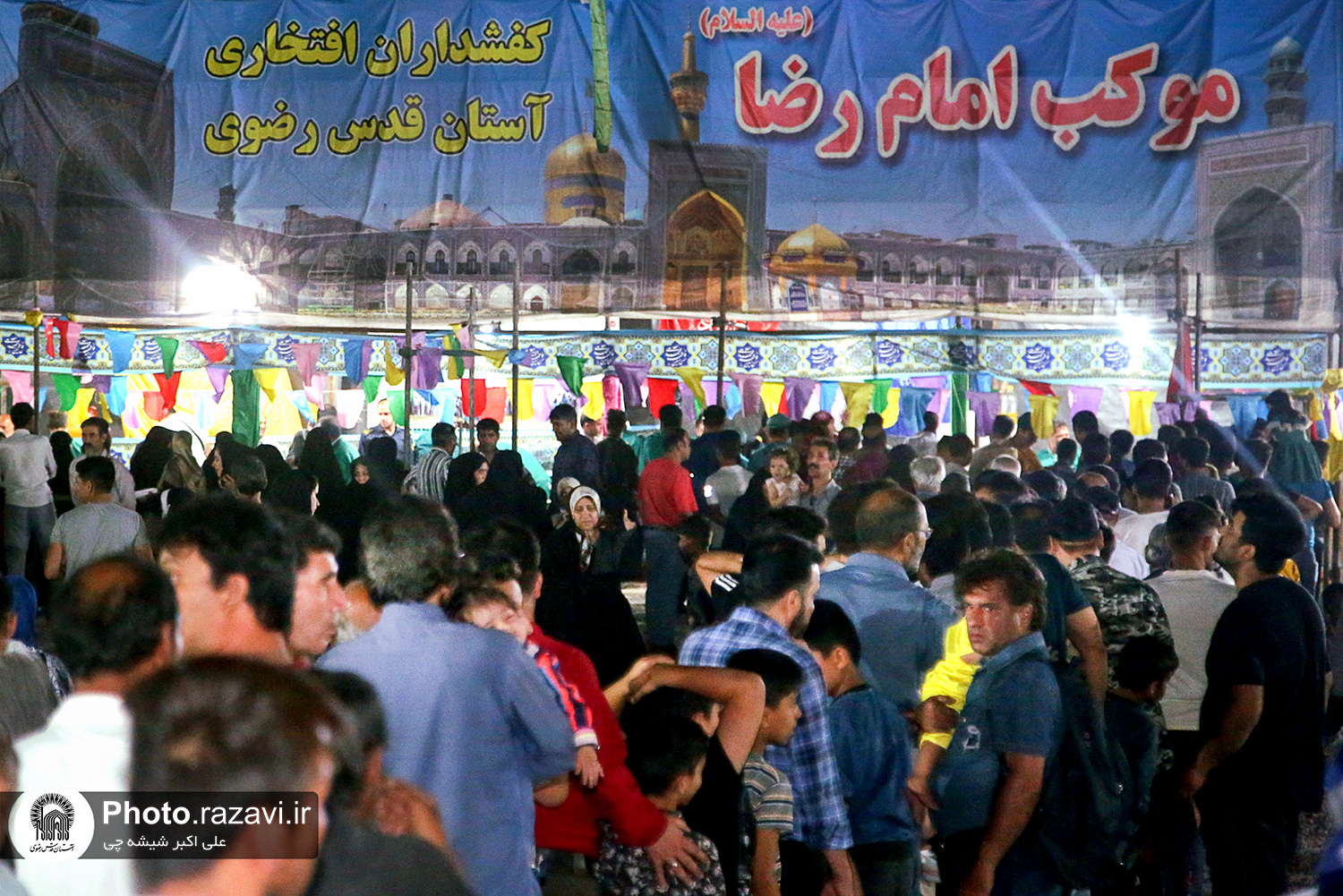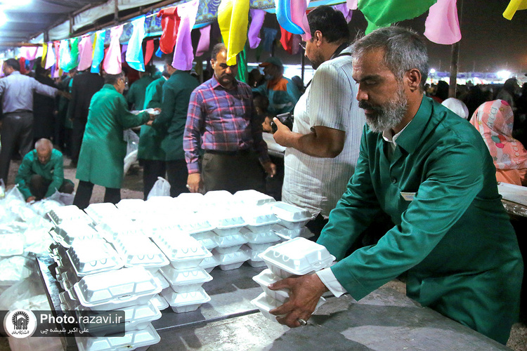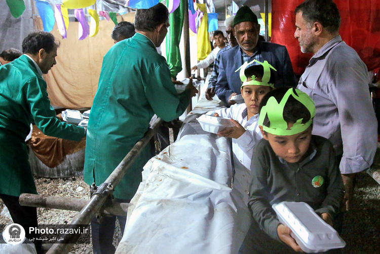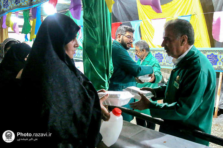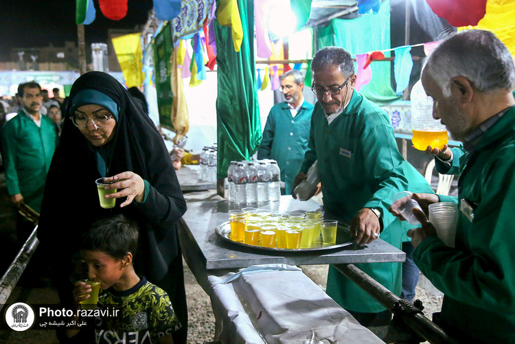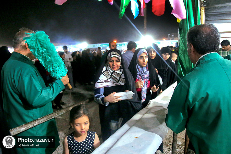 موکب کفشداران افتخاری حرم مطهر رضوی به مناسبت دهه ولایت با عنوان «بزرگترین رویداد» در منطقه رسالت مشهد با توزیع غذا و شربت از مردم این منطقه پذیرایی کردند.