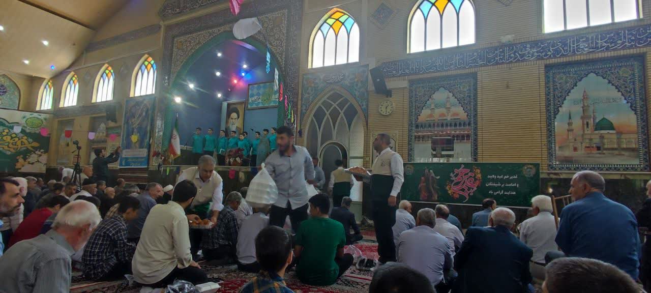 در این مراسم خادمیاران و یاوران رضوی از نمازگزاران جمعه با توزیع شربت و 50 کیلو شیرینی و یک هزار پرس غذای گرم  در بین نمازگزاران و مردم پذیرایی کردند و روز اکمال دین را گرامی داشتند.