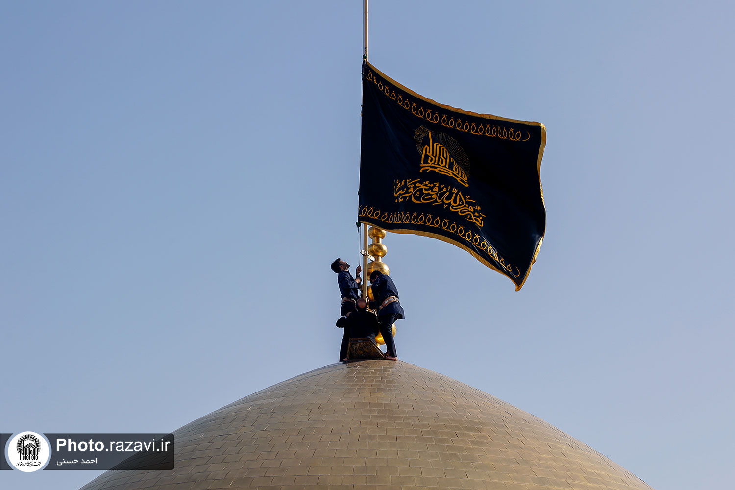 عکس با کیفیت : تعویض پرچم حرم مطهر رضوی