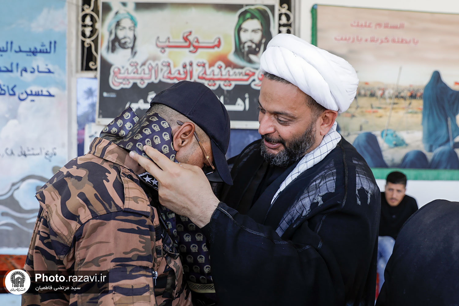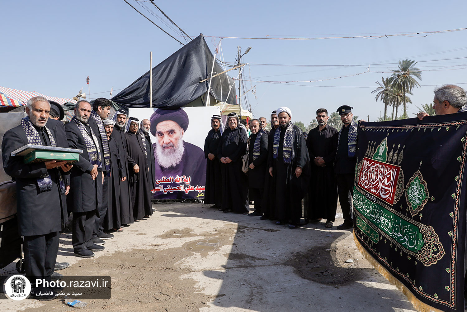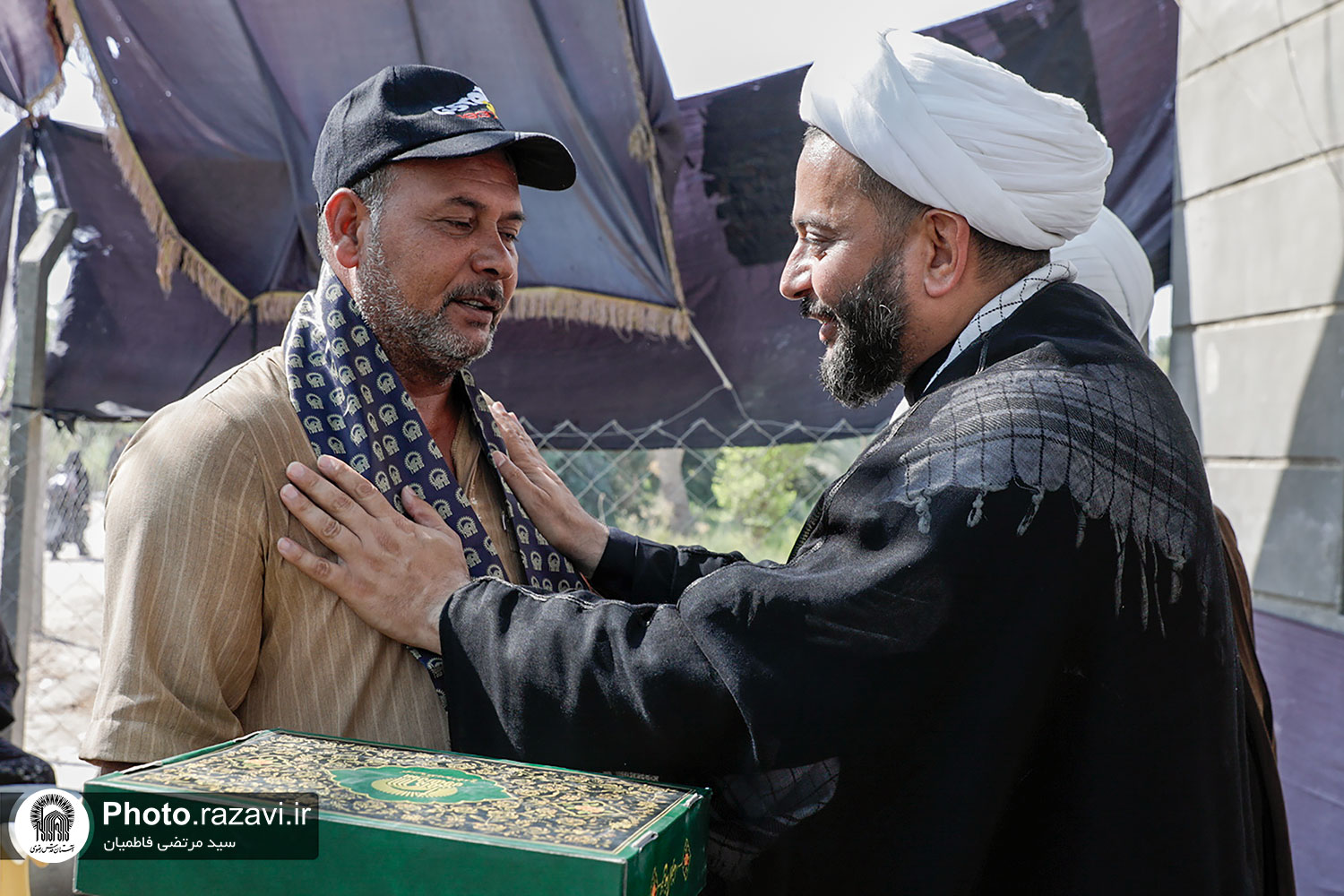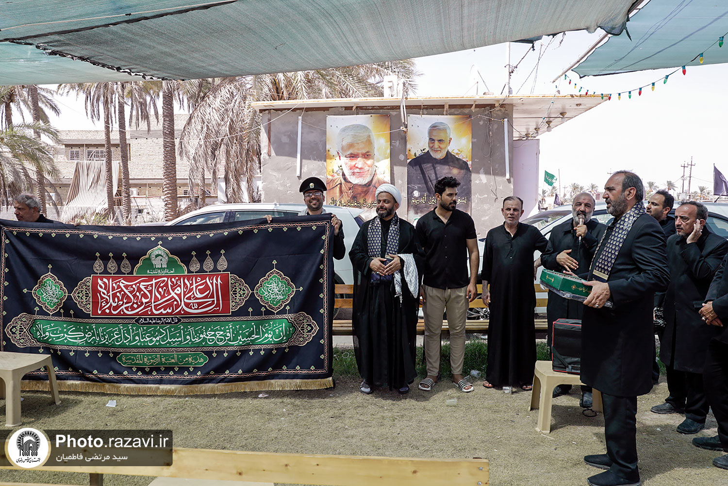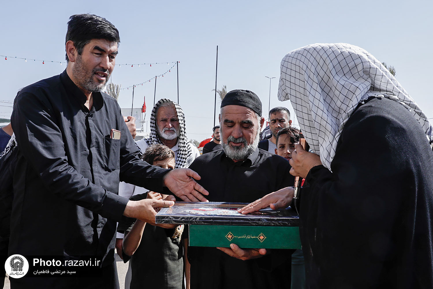 کاروان خدام بارگاه منور رضوی، با حضور در مسیرهای پیادهروی کربلا، ضمن خداقوت به موکبهای خدمترسان به زائران پیاده اربعین حسینی بستههای متبرک رضوی را نیز بین زائران و موکبدران توزیع کردند.