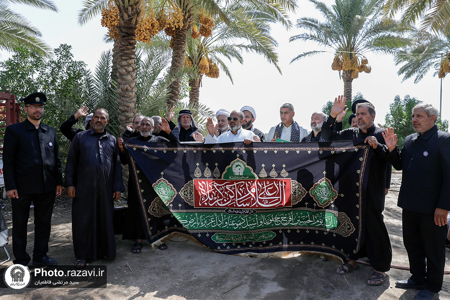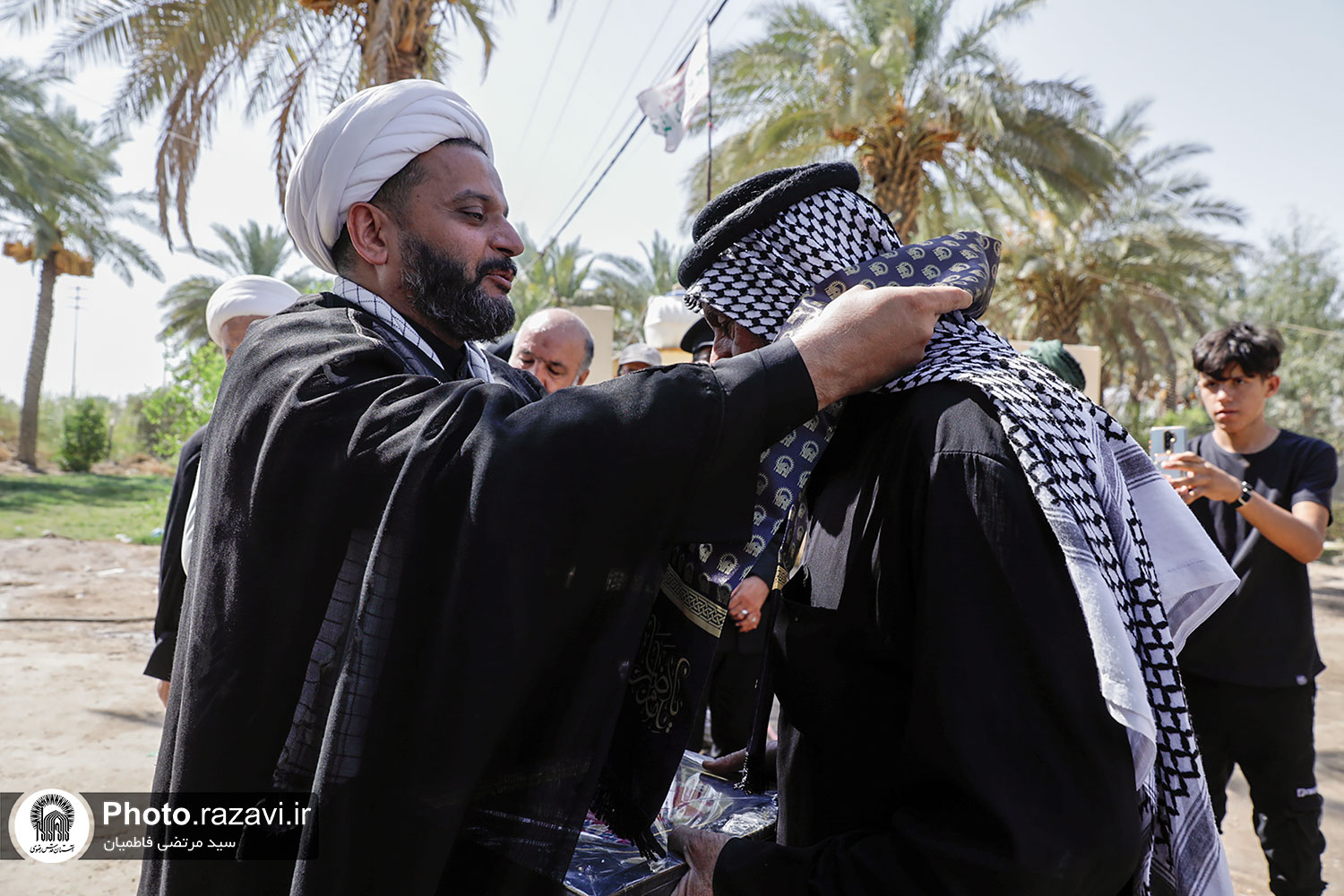 کاروان خدام بارگاه منور رضوی، با حضور در مسیرهای پیادهروی کربلا، ضمن خداقوت به موکبهای خدمترسان به زائران پیاده اربعین حسینی بستههای متبرک رضوی را نیز بین زائران و موکبداران توزیع کردند.