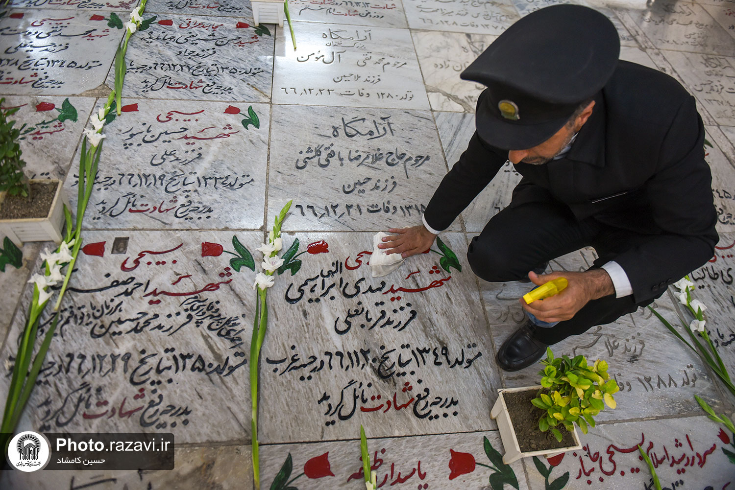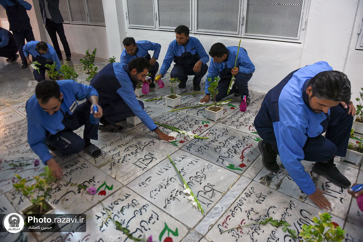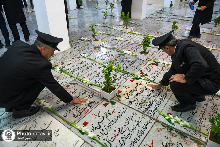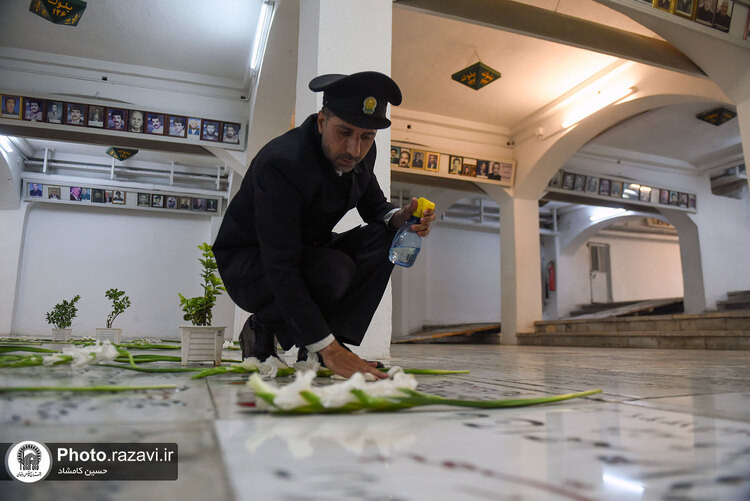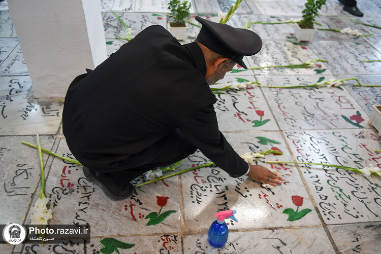 غباروبی مزار شهدای حرم مطهر رضوی