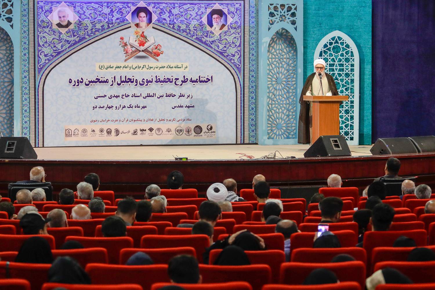 تولیت آستان قدس رضوی در این مراسم ضمن تبریک سالروز میلاد پیامبر(ص) و امام صادق(ع) گفت: خداوند متعال بهترین مخلوق خود یعنی پیامبر عظیمالشأن اسلام را برای هدایت مردم فرستاد و این نشان از محبت خدا به مردم و جایگاه والای انسان نزد خالق عالم دارد و انسانها باید قدر خود را بدانند که تا این حد در نزد خداوند عزیز و محترم هستند.