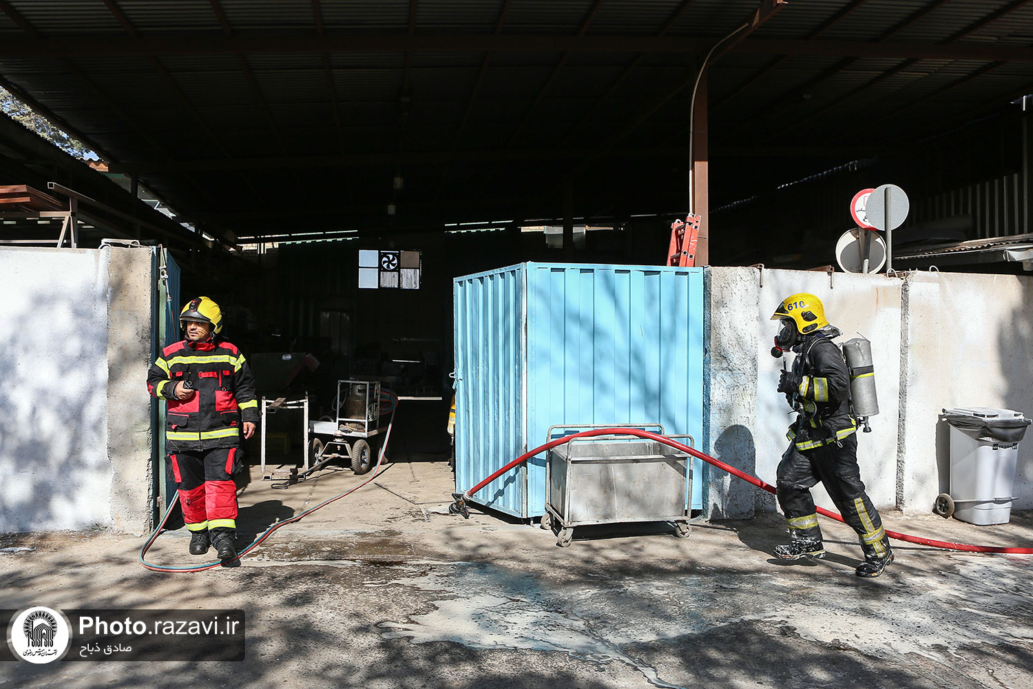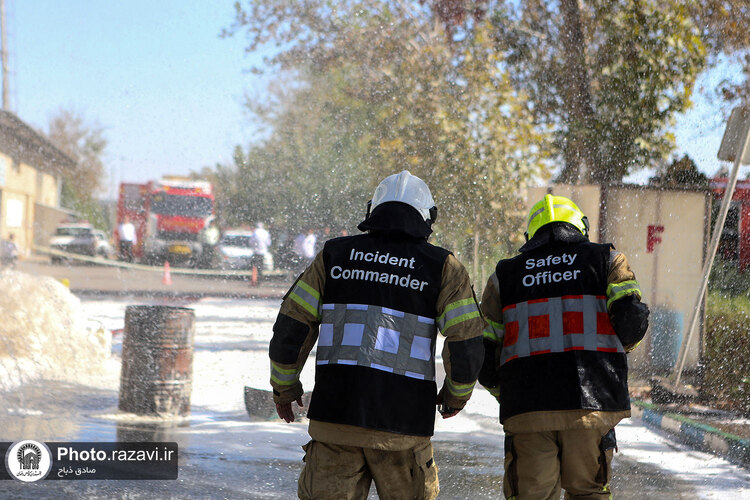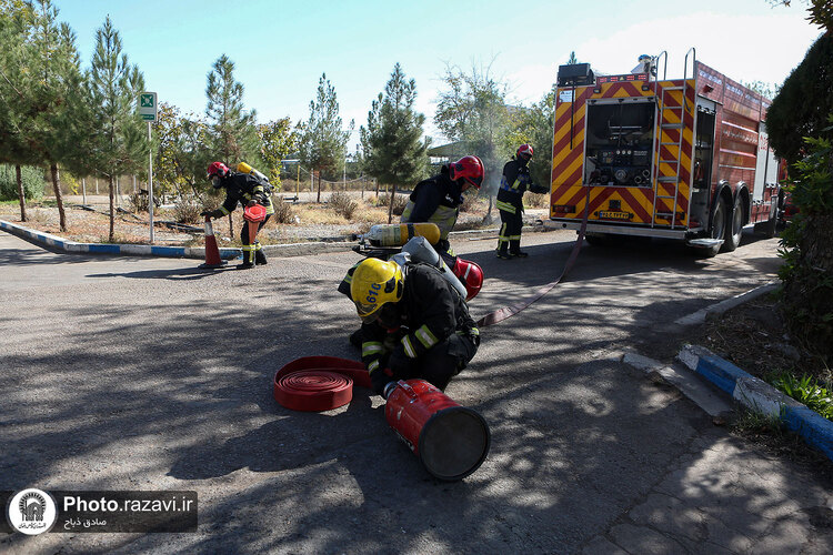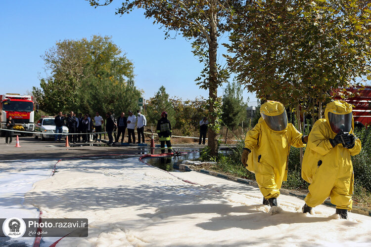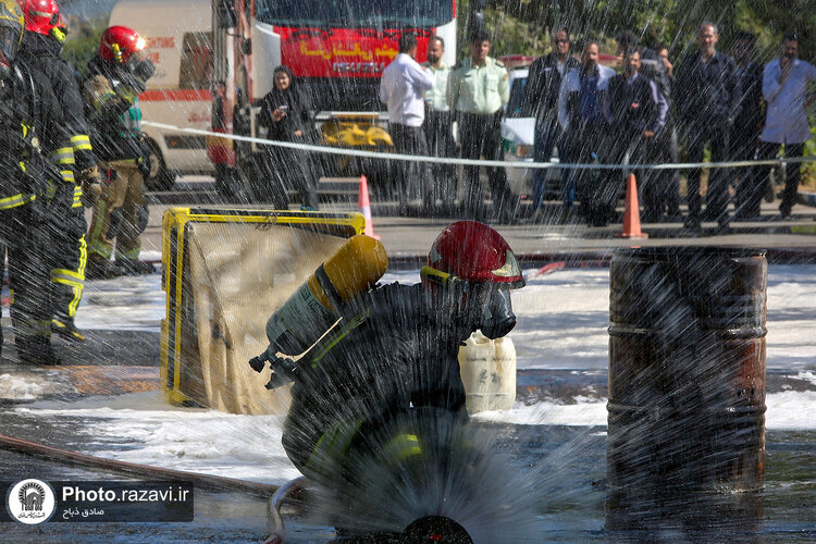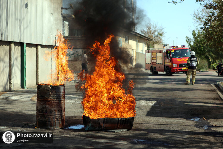 مانور مشترک اطفاء حریق در شرکت صنایع غذایی رضوی