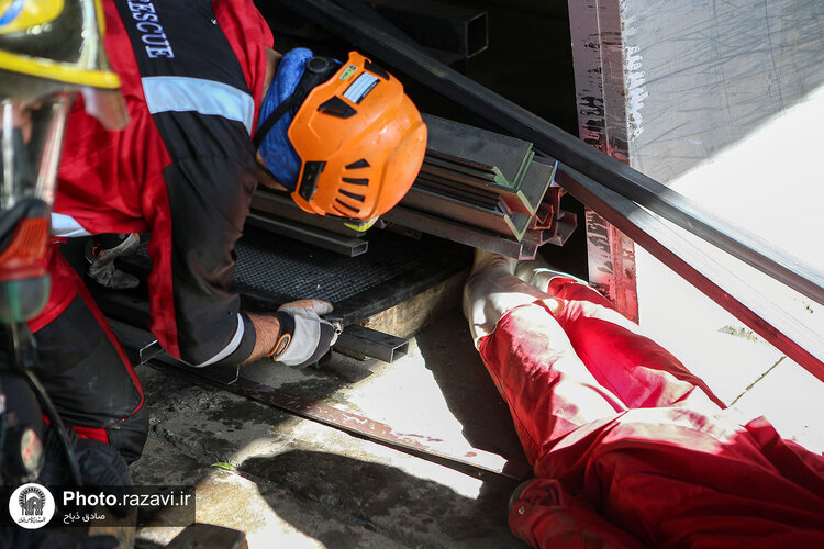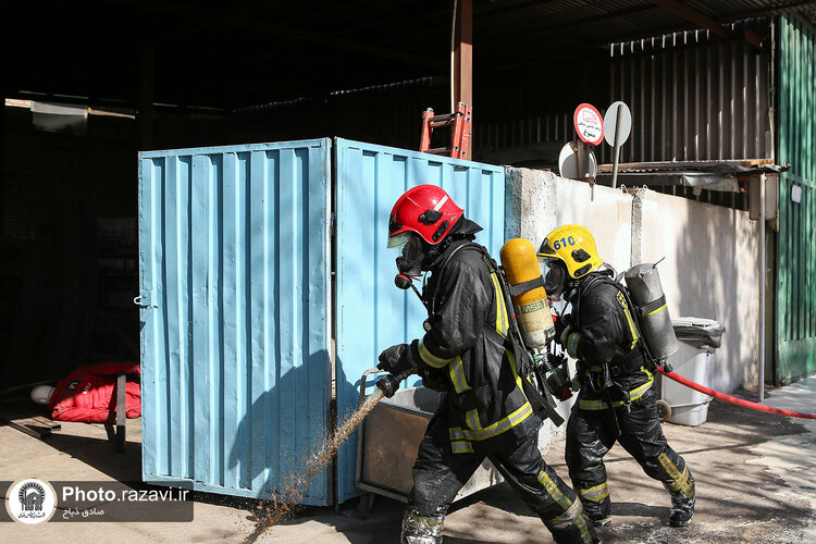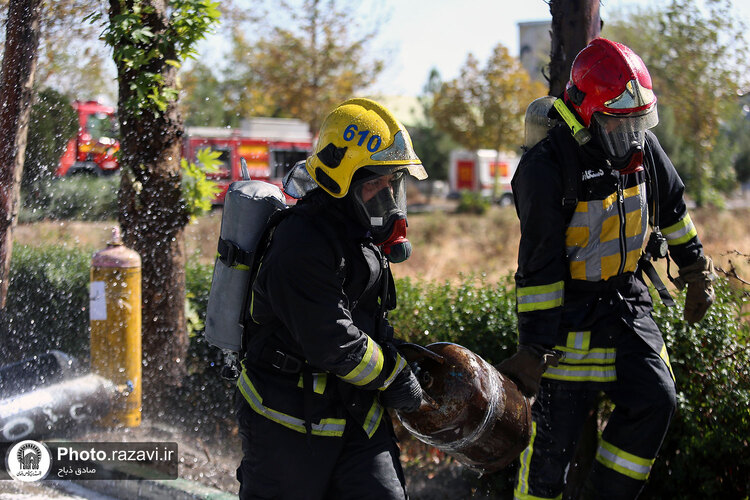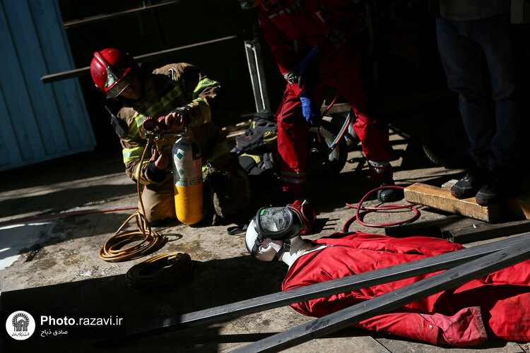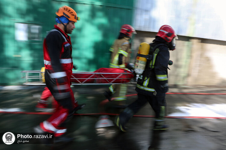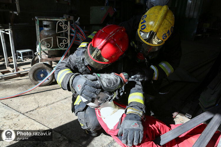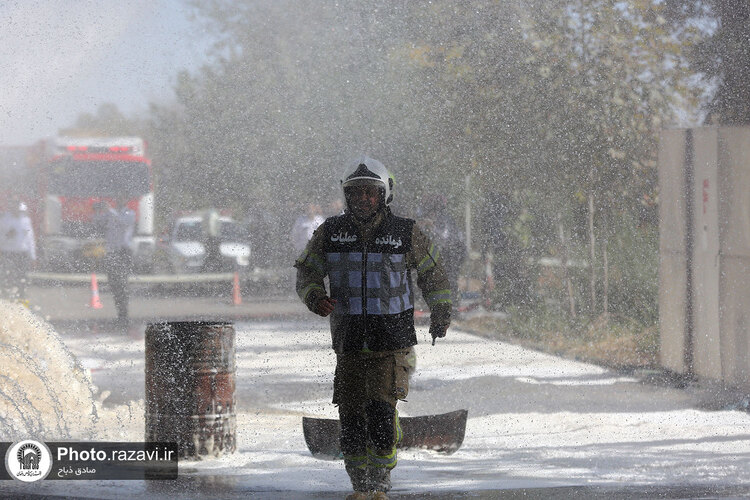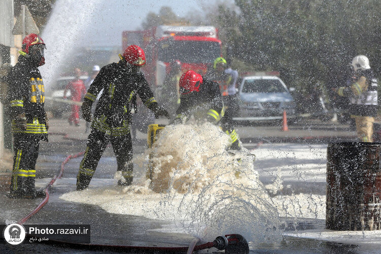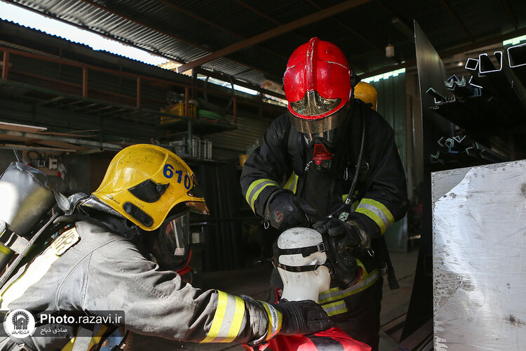مانور مشترک اطفاء حریق در شرکت صنایع غذایی رضوی