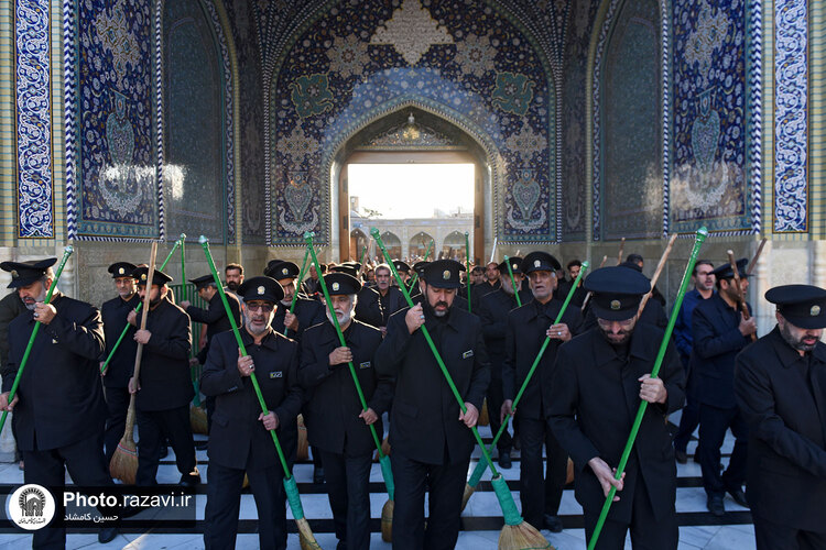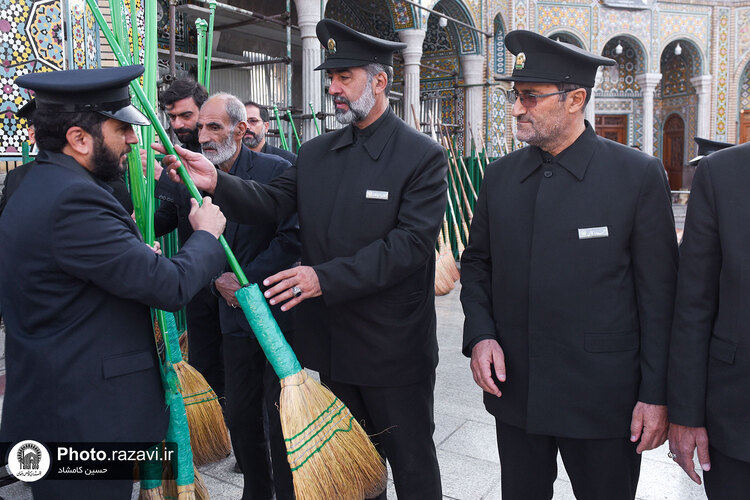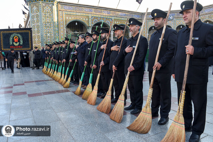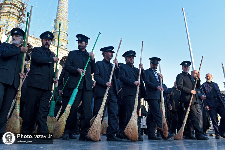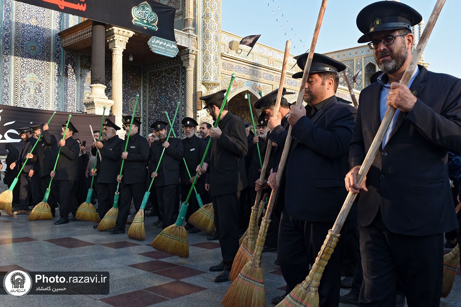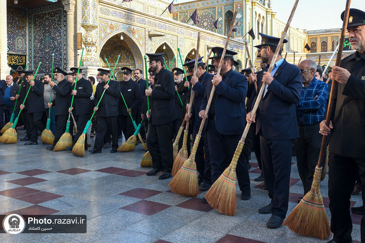 آیین جاروکشی حرم حضرت معصومه(س) توسط خدام حرم مطهر رضوی