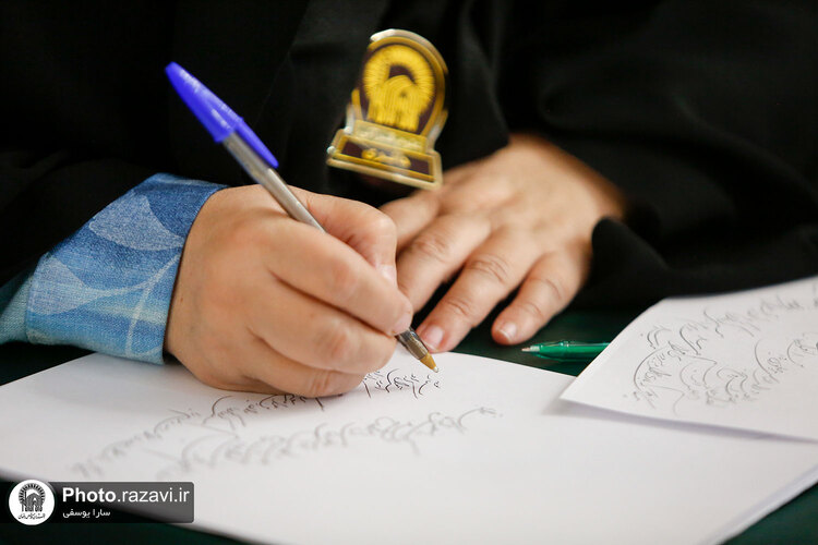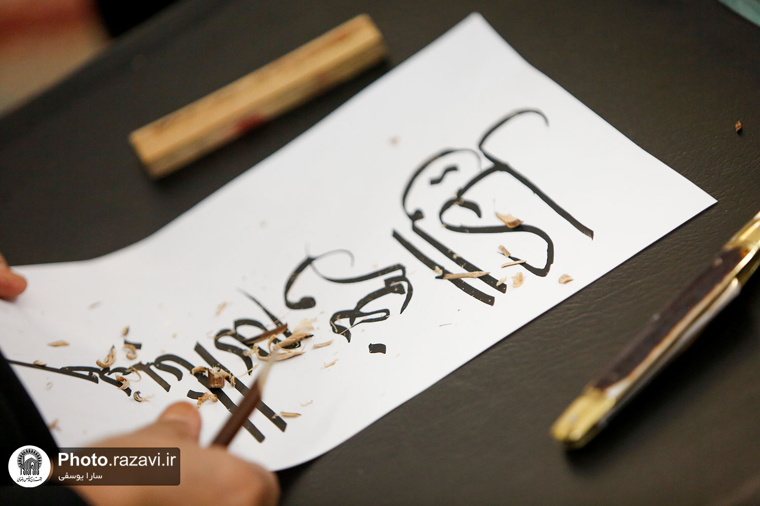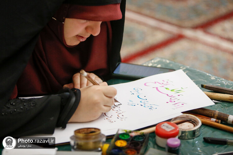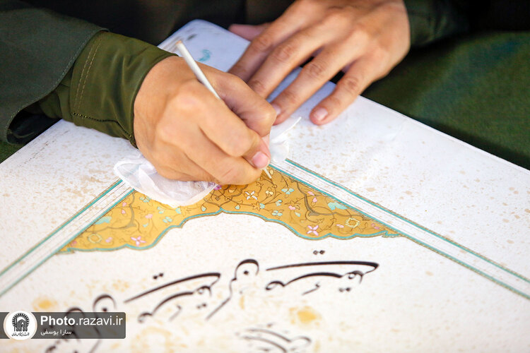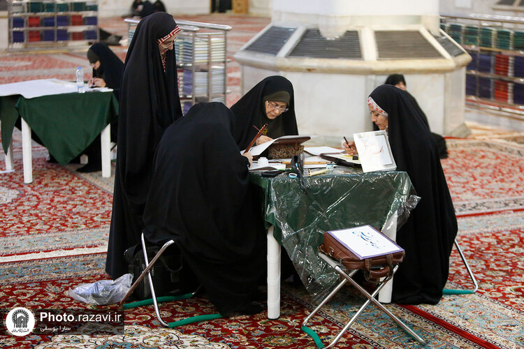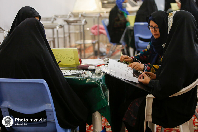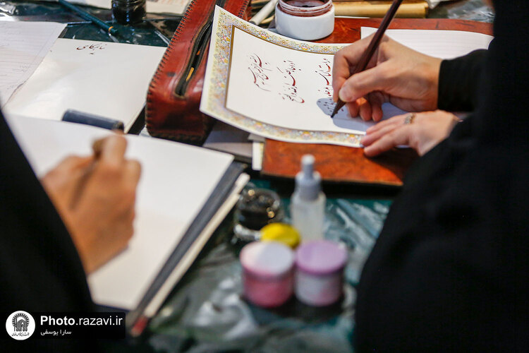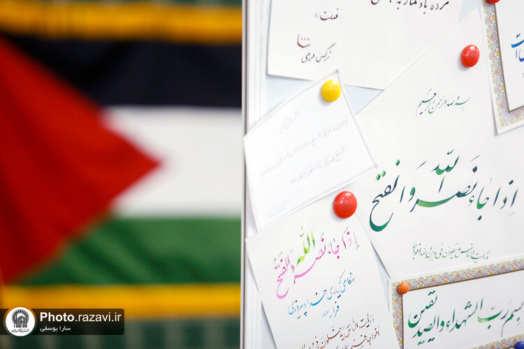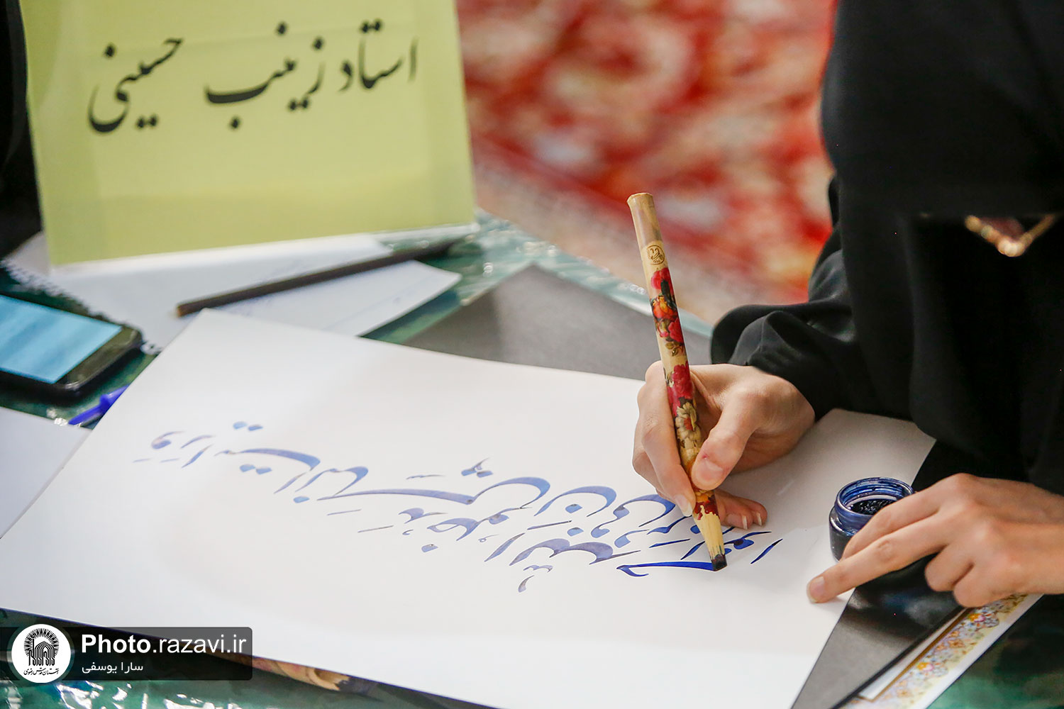 نمایشگاه هنر حماسه با موضوع خوشنویسی آیات قران کریم توسط بانوان هنرمند قرآنی در حمایت از مردم غزه روز پنجشنبه ۱۱ آبان 1402 در رواق حضرت زهرا(سلامالله علیها) حرم مطهر رضوی برگزار شد.