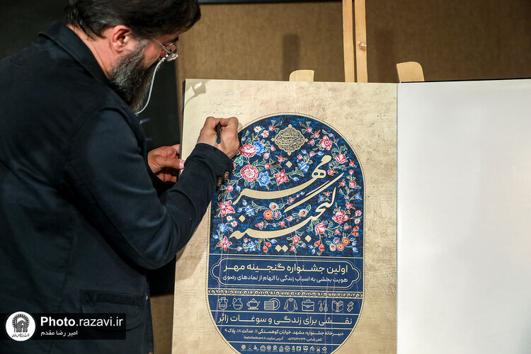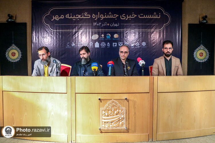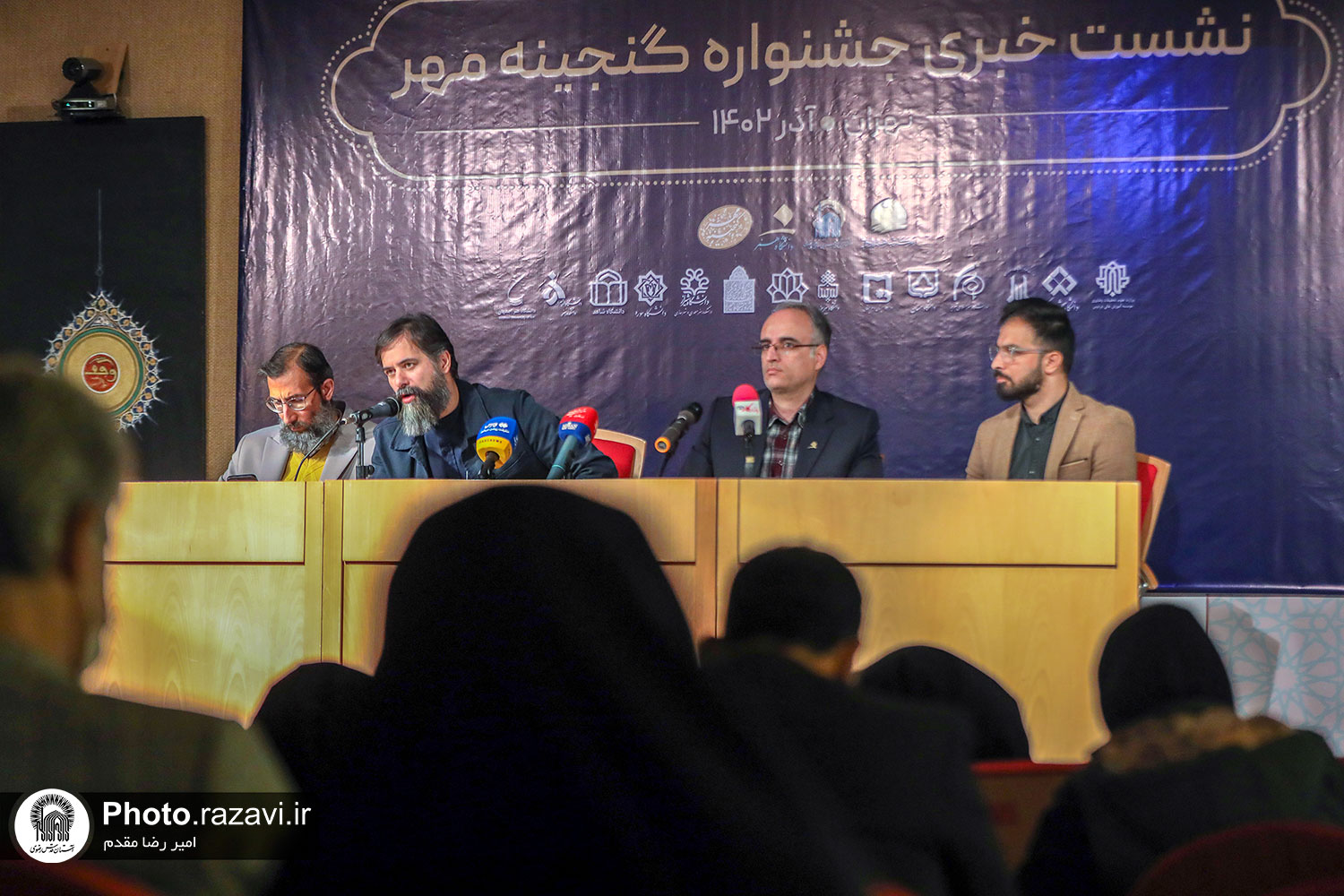 نشست خبری جشنواره گنجینه مهر روز دوشنبه 6 آذر 1402 با حضور امیرمهدی حکیمی؛ مدیرعامل مؤسسه آفرینشهای هنری آستان قدس رضوی برگزار شد. این جشنواره با هدف توسعه و ترویج مفاهیم رضوی با استفاده از ابزار هنر به همت مؤسسه آفرینشهای فرهنگی و هنری آستان قدس رضوی و دانشگاه هنر برگزار میشود.