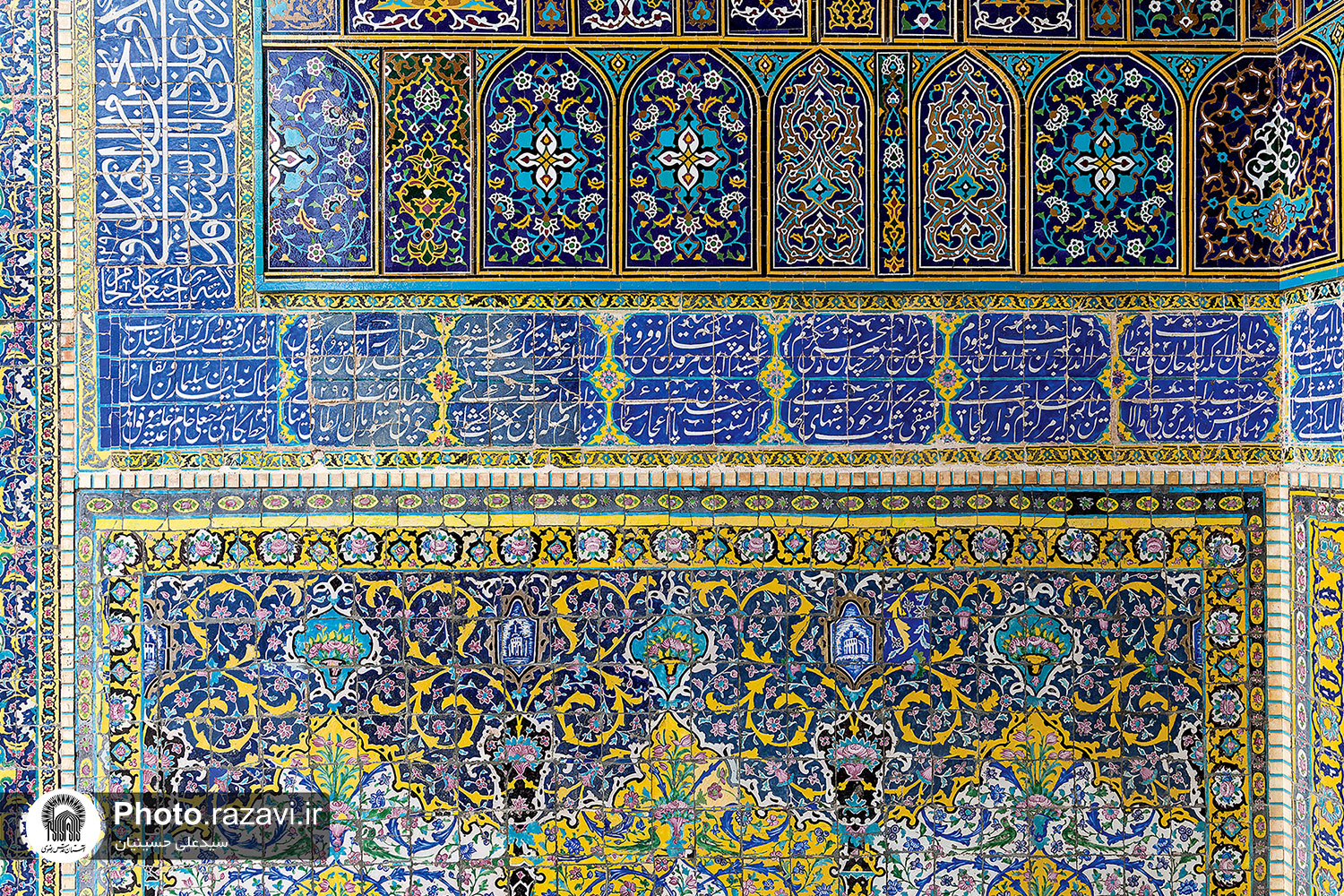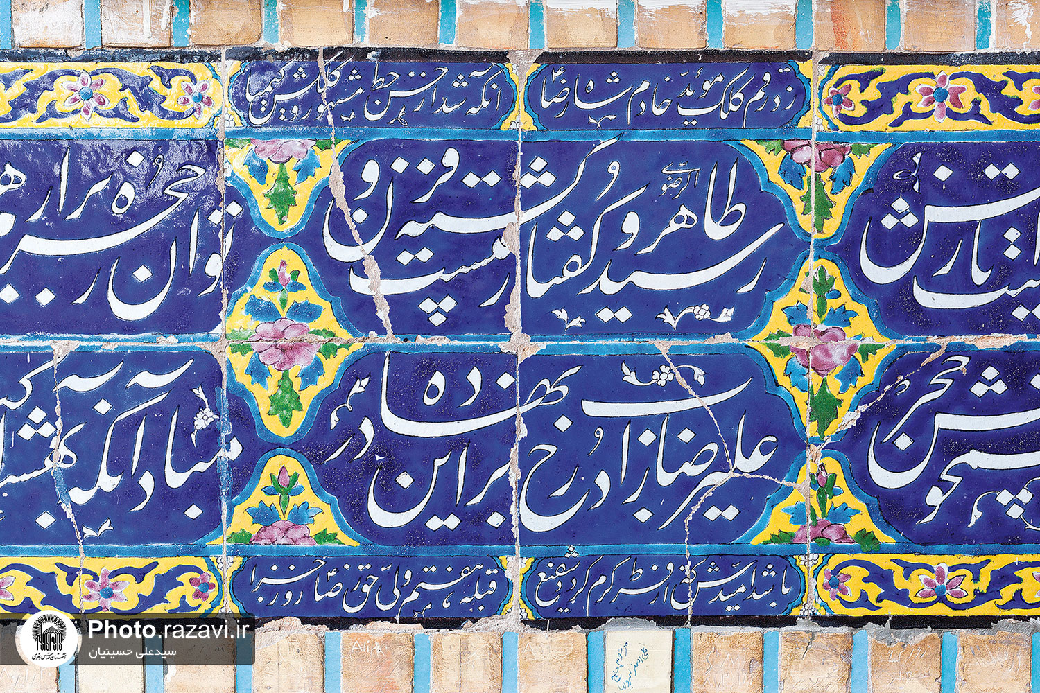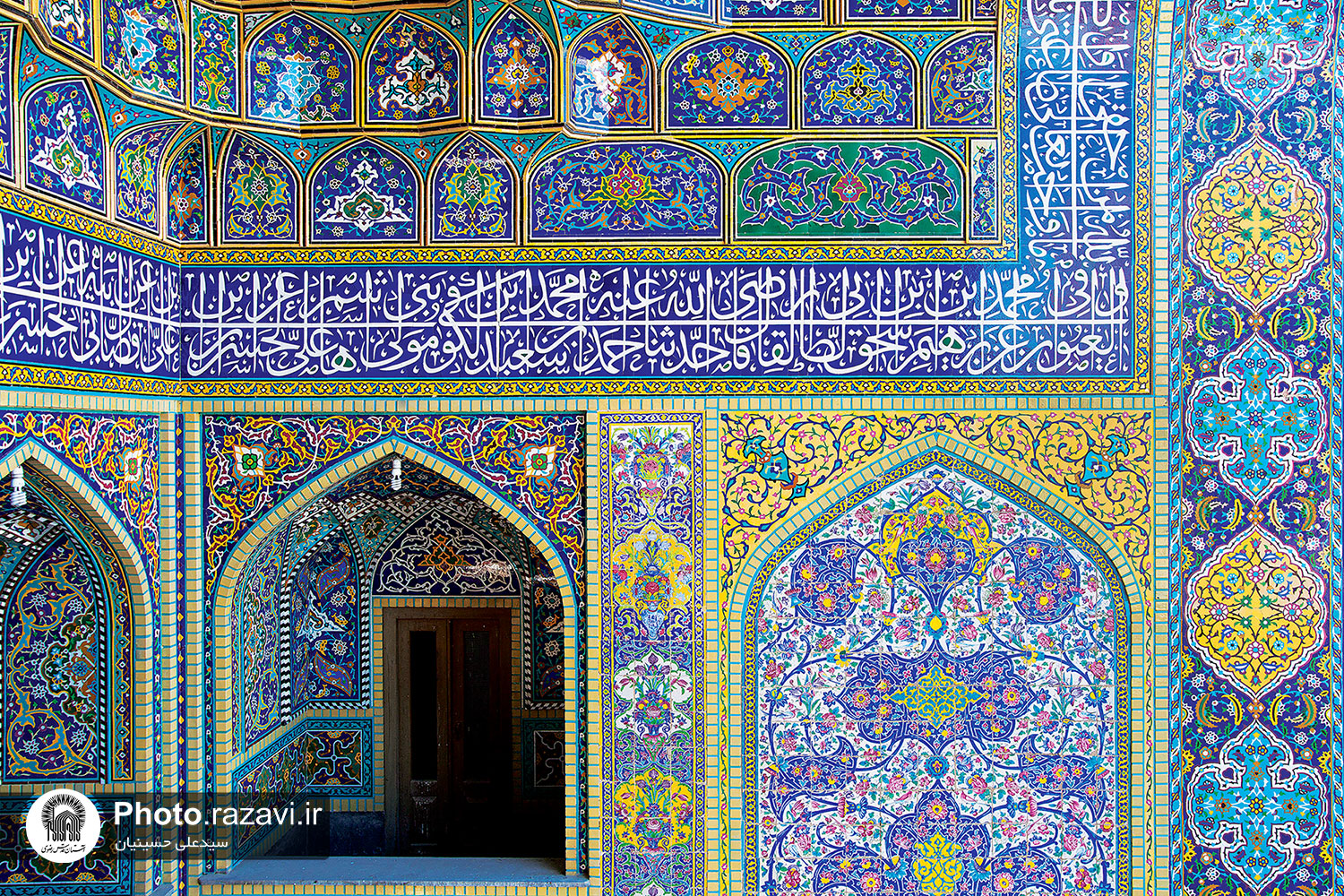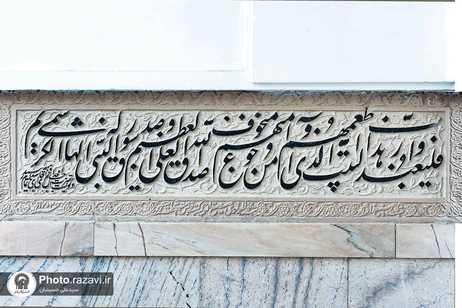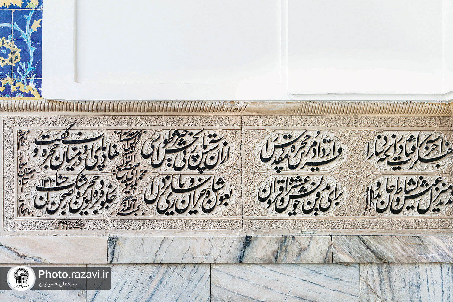 صحن آزادی به دستور فتحعلی شاه ساخته شد و تزئینات آن تا اواخر دوران قاجار ادامه یافت و به همین علت تناسب و تزئیناتش یک بنای اصیل قاجاری را نمایش میدهد. نماهای بیرونی صحن در عصر پهلوی و به سلیقه و شیوه کار محمد حسن رضوان که از واپسین هنرمندان نظام سنتی آموزش بود اجرا شده و ضمن برخورداری از نوآوریهایی در چارچوب سنت، از گرایش این هنرمند به احیای کتیبهنگاری عصر تیموریان و صفویان حکایت میکند. در این مجموعه عکسهای منتخبی از کتاب کتیبههای صحن آزادی که به همت موسسه آفرینشهای هنری آستان قدس رضوی گردآوری شده است به نمایش گذاشته شده است.